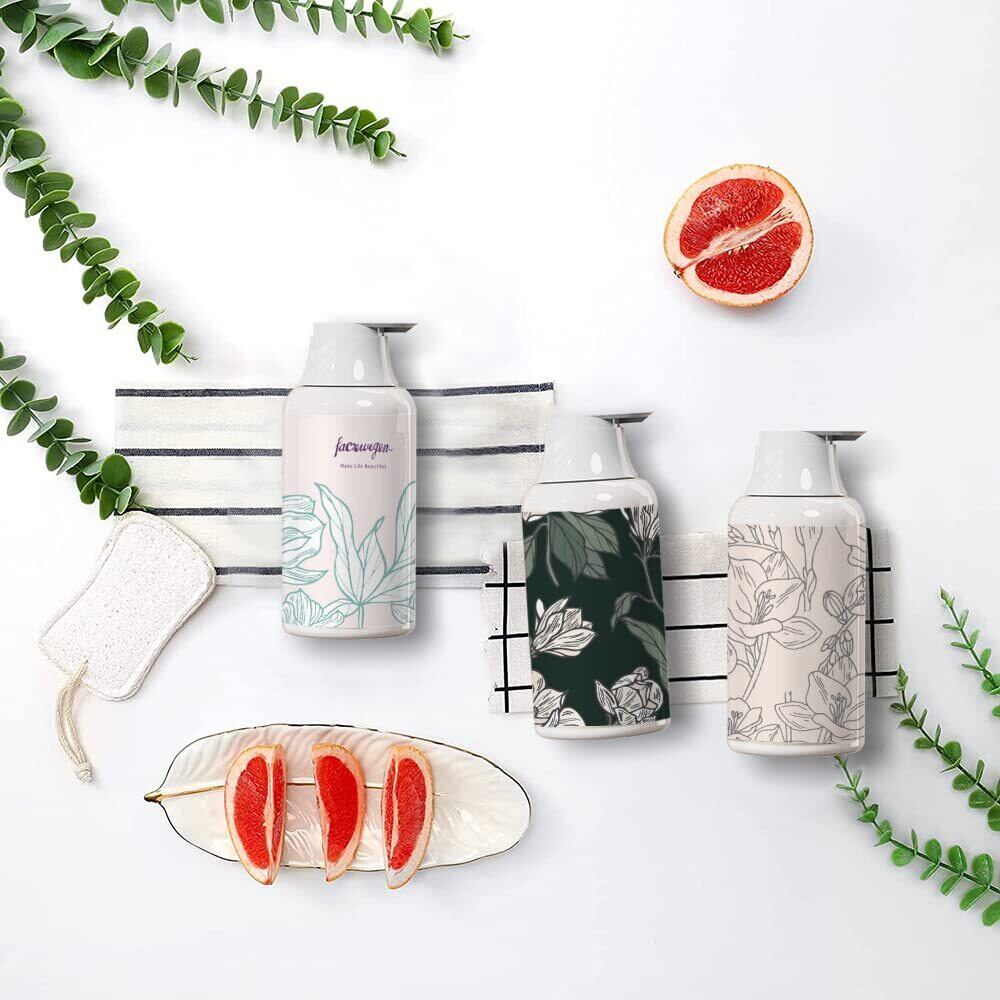シャンプーボトル ディスペンサー 3本セット 詰め替えボトル 容器 おしゃれ 浴室 洗面所 食器用洗剤 適用 (500, flower)