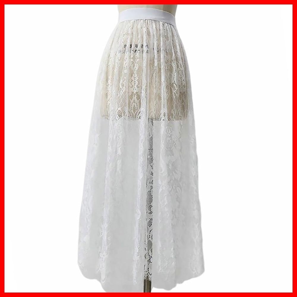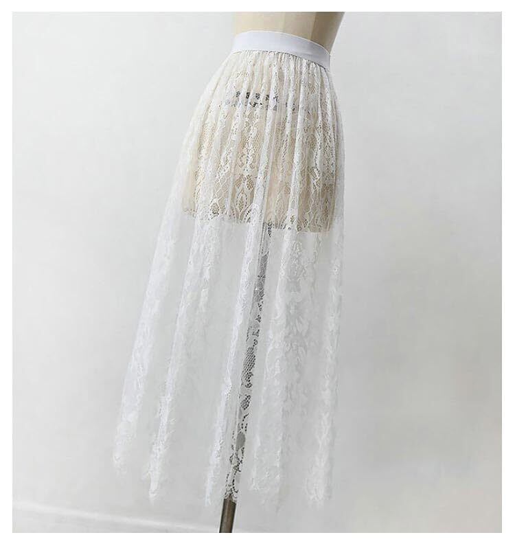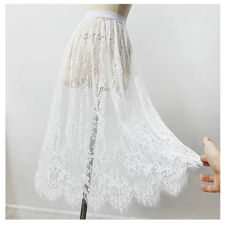 インナー スカート ロング レース ペチコート ペチスカート 75cm 丈増し スカート 総レース 重ね着 レイヤード ドレスインナー ゴムウエスト おしゃれ 体型カバー レディース ロングスカート マキシ丈 白 黒 | hananoki