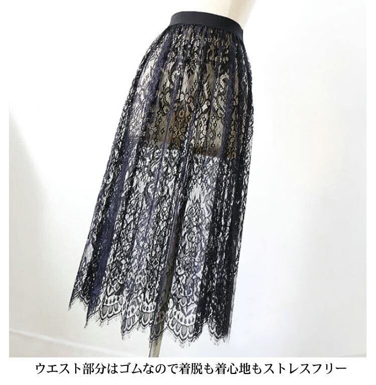 インナー スカート ロング レース ペチコート ペチスカート 75cm 丈増し スカート 総レース 重ね着 レイヤード ドレスインナー ゴムウエスト おしゃれ 体型カバー レディース ロングスカート マキシ丈 白 黒