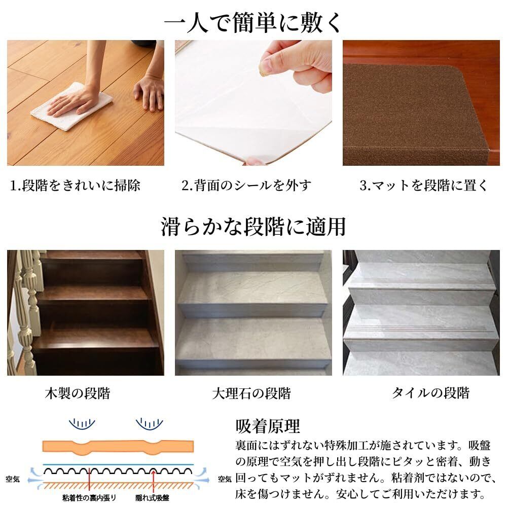 ブラウン 階段カーペット 犬猫用 ステップマット 70X22cm 15枚 吸着 滑り止め 階段敷き ズレない 床保護 転倒防止 キズ防止