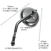 重厚感のあるしっかりした造り。アメリカンなどにもマッチします。(要ミラーアダプターやミラーホルダー)