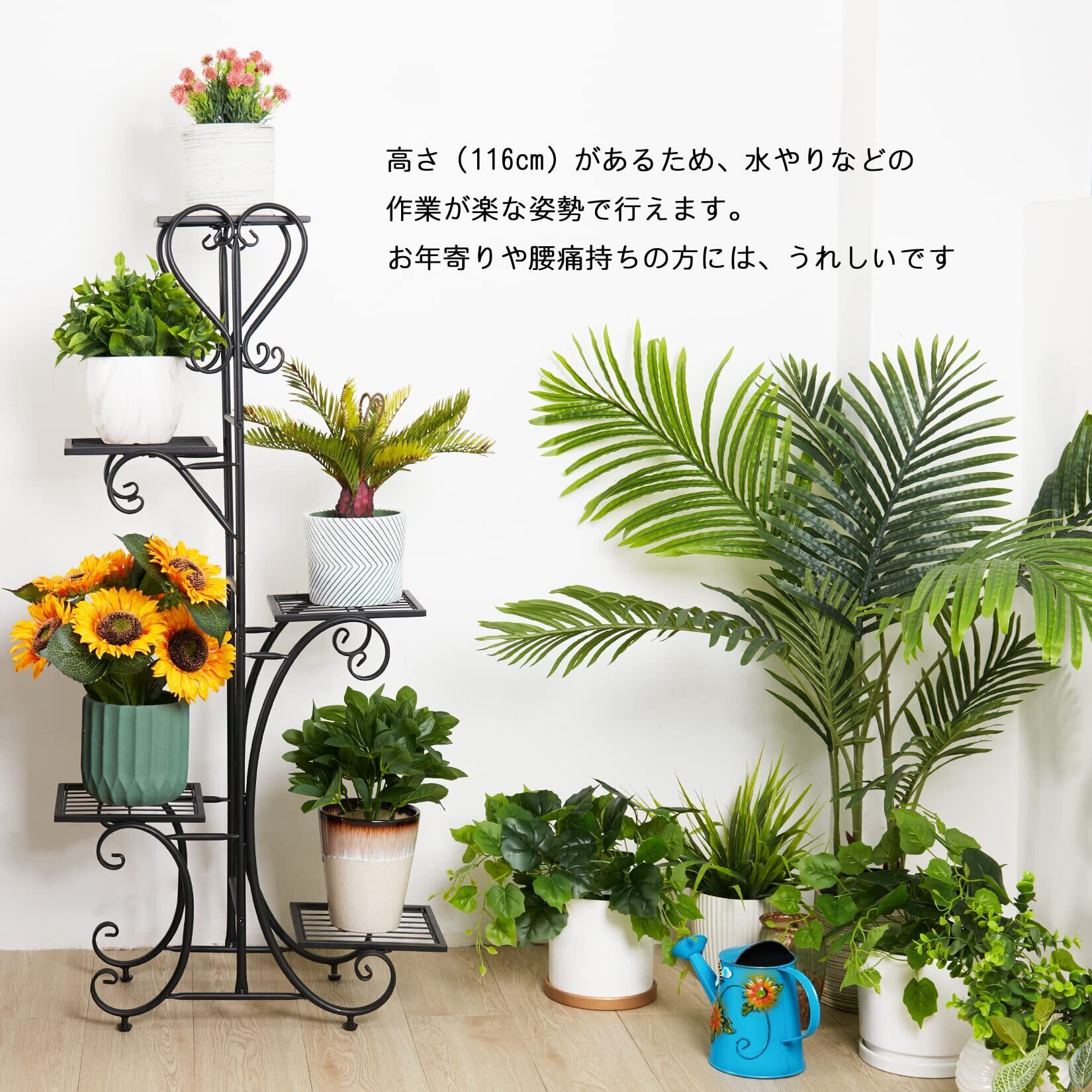 【作業しやすいハイタイプ】高さ(116cm)がある植物棚なので、水やりなどの作業が楽な姿勢で行えます。お年寄りや腰痛持ちの方には、うれしいです
