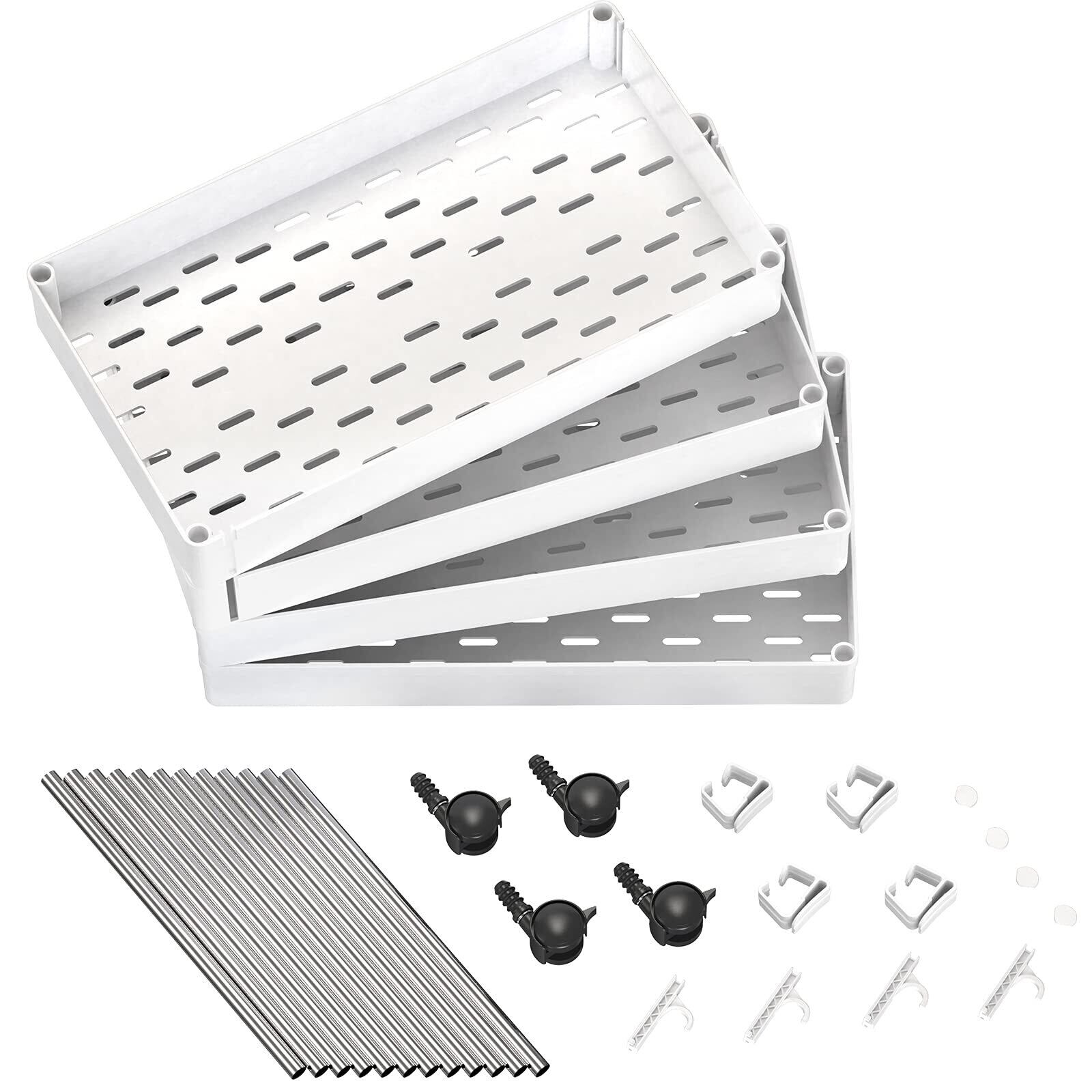 【頑丈&耐久性】軽量で丈夫な素材でできたワゴンで、ご底板は穴付きで通気性がよく、お掃除が簡単で、湿気が多い場所でも安心。また、落下防止フレーム付きがあり、小物や割れ物等落下の心配なく、ジャムなどの小さいものペットボトルなどの大きな物まで収納可能です。