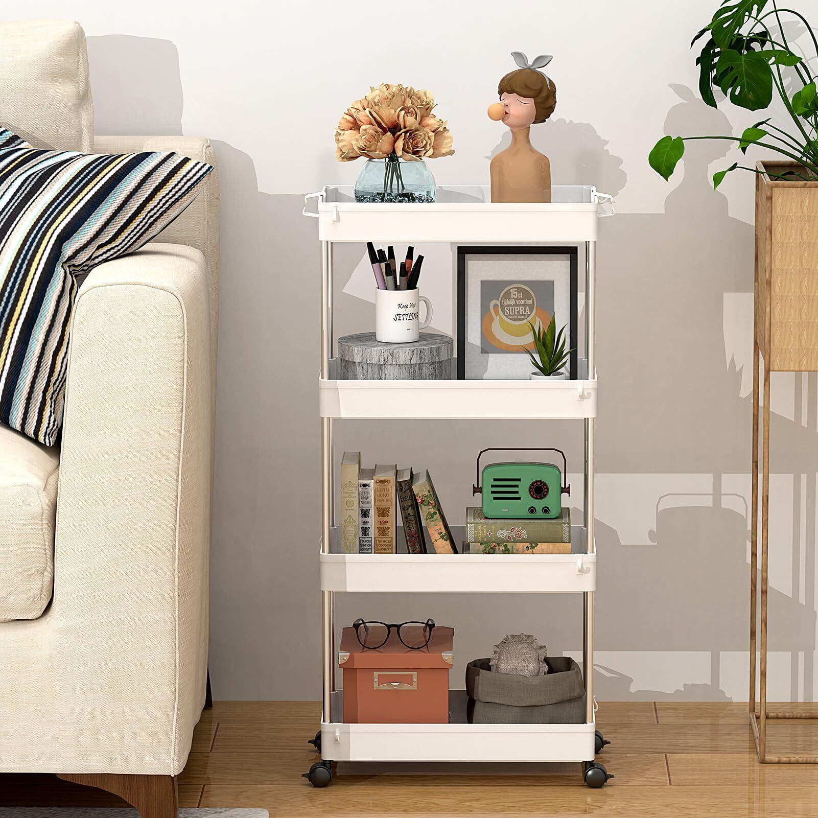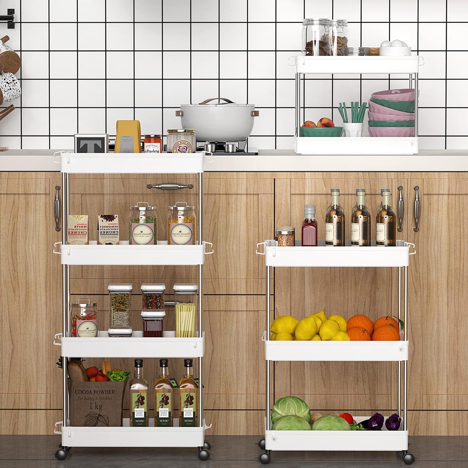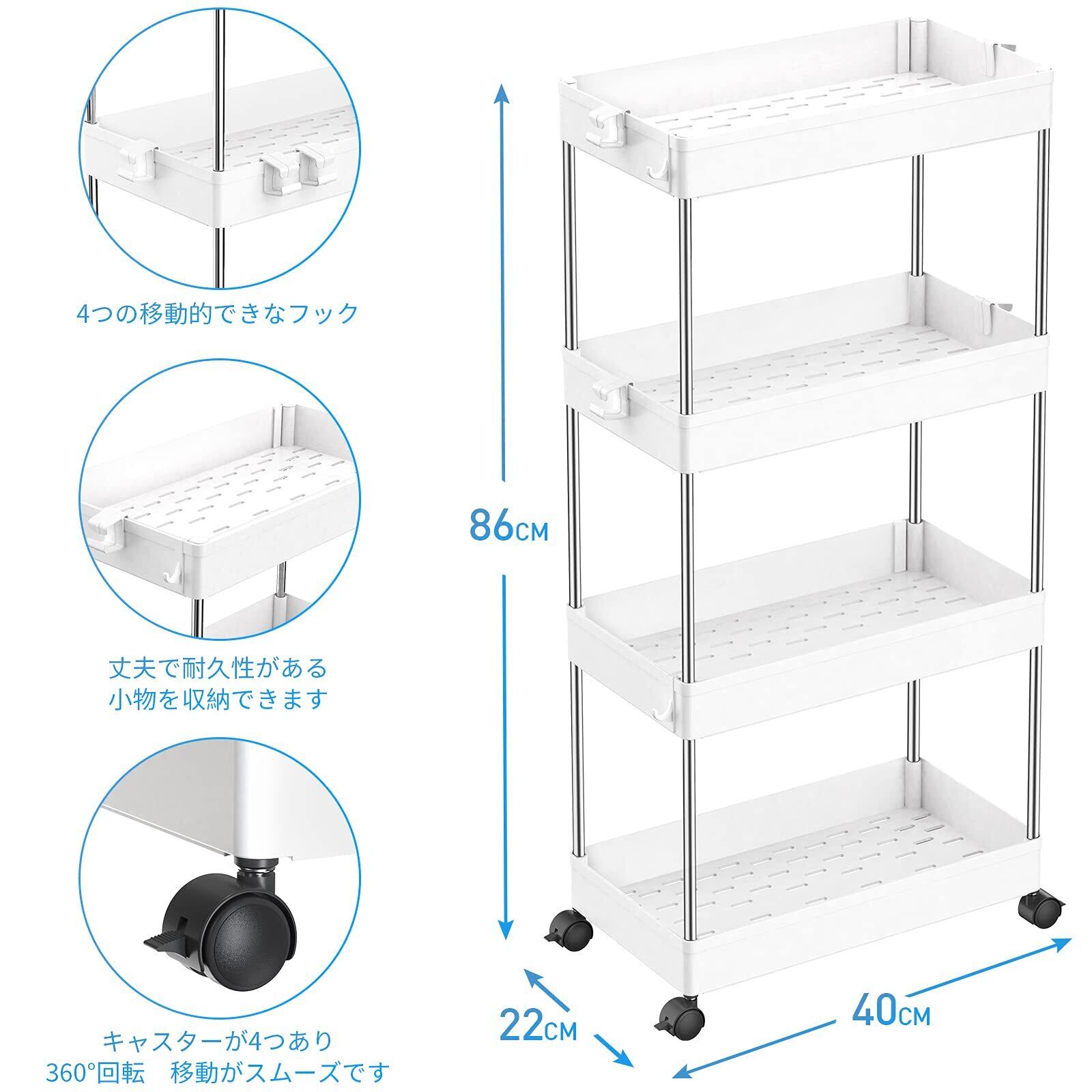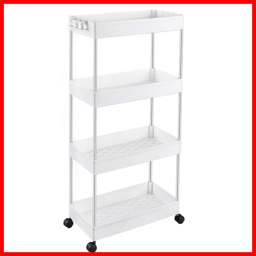 【高品質の家庭用収納 ワゴン】高級な材質は採用なので、高い安定性を誇ります。スリムボディーをして、部屋の隙間に自在に配置されています。トイレ収納、ベッドルーム、居間、子供部屋、キッチン、書店、美容室などの使用に最適して、収納力は抜群です。いろんなシーンで大活躍なキッチンワゴンです
