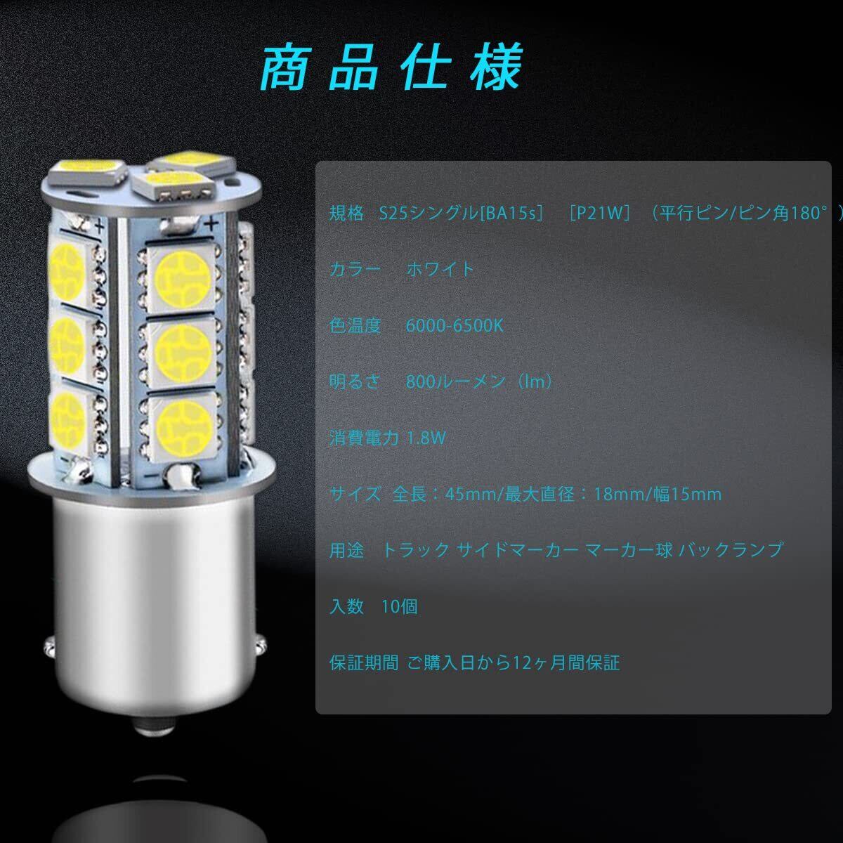 24V S25 LED シングル ホワイト バックランプ トラック用 バス 大型車両 バックライト サイドマーカーライト ポジションランプ マーカーランプ マーカー球 G18 爆光 船舶 重機 汎用 10個セット