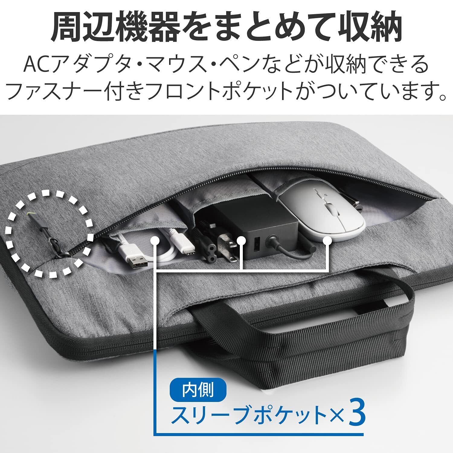 ■ ACアダプタ・マウス・ペンなどの周辺機器をまとめて収納できるフロントポケットがついています。ポケット内部には、収納物の整理に便利なスリーブポケットを備えています。
