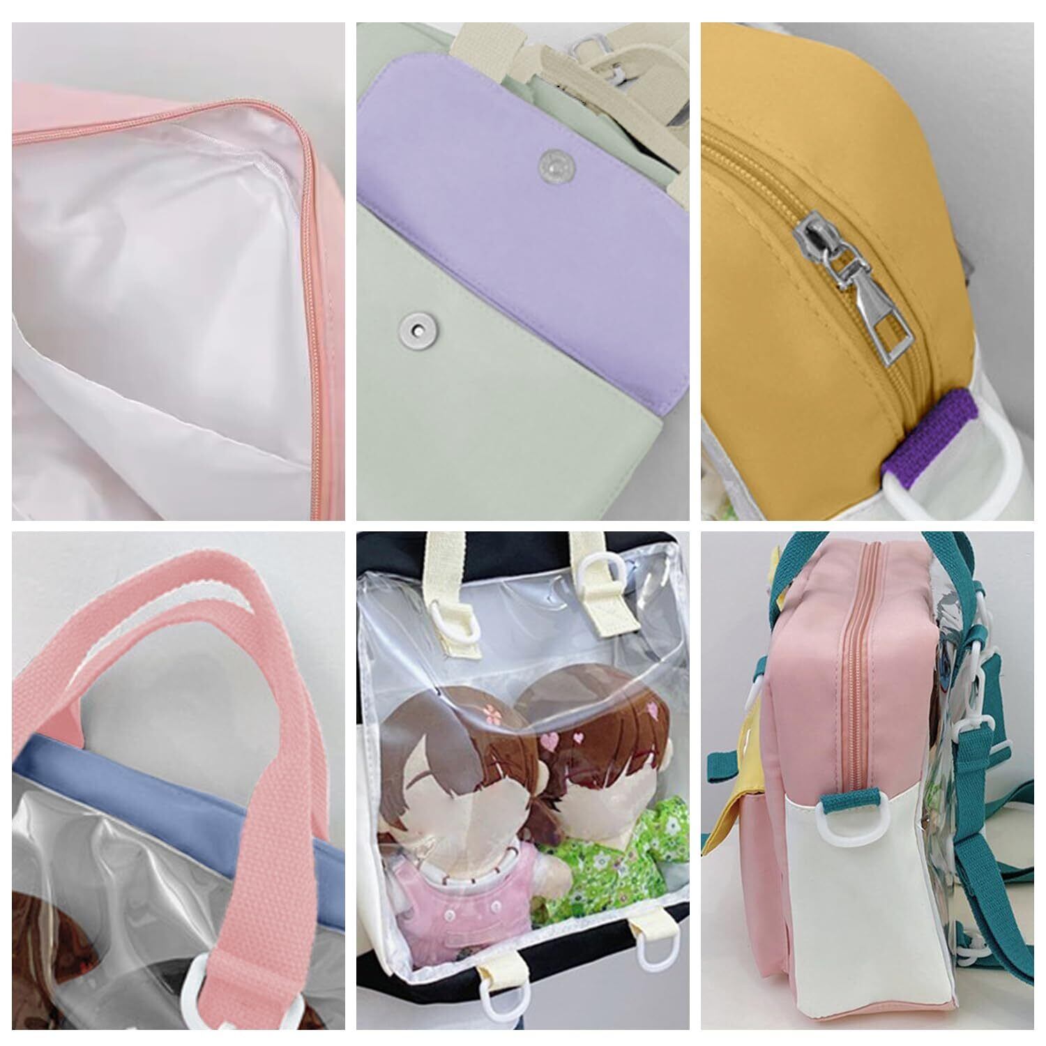 用途:人形展示・装飾・外出用のバッグ。携帯、モバイルバッテリ、イヤホン、充電器など、ぬいぐるみ、缶バッジ、萌えグッズ、好きな芸能人やアニメキャラの写真、ストラップなどが収納できます。デイリー使いはもちろん、イベント・旅行・遠足・コンサート・お出かけにも活躍。