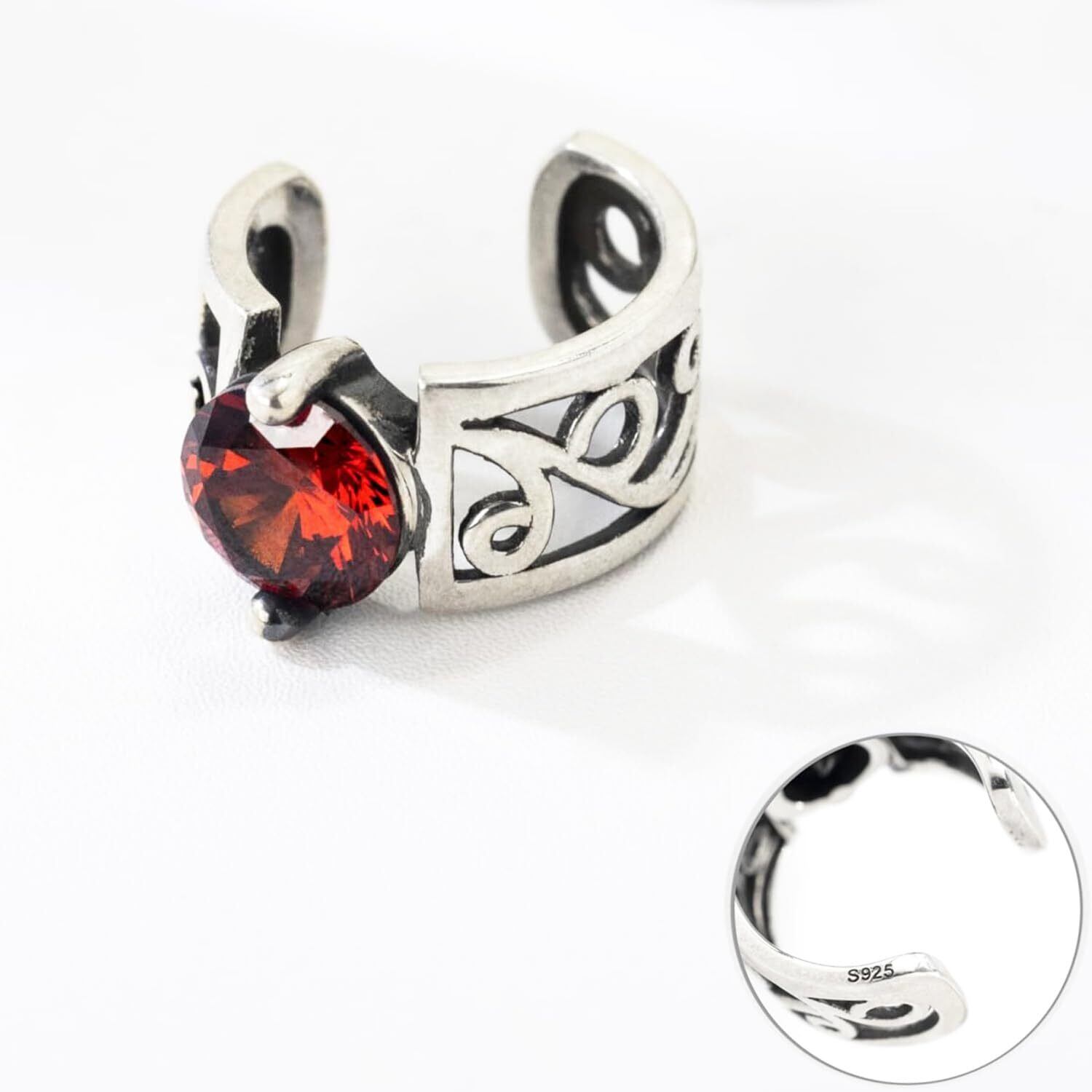 商品の詳細:イヤーカフの外径:約12mm/内径:約10mm。サイズ:幅 7mm 厚さ 1mm;石のサイズ:6mm。素材:シルバー925(刻印有)、合成ガーネット。付属品:精美な包装ケース。