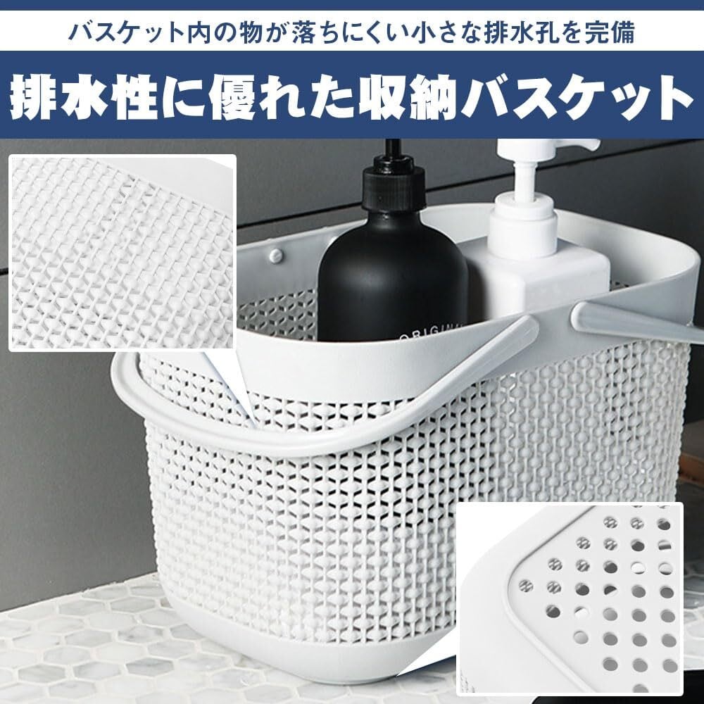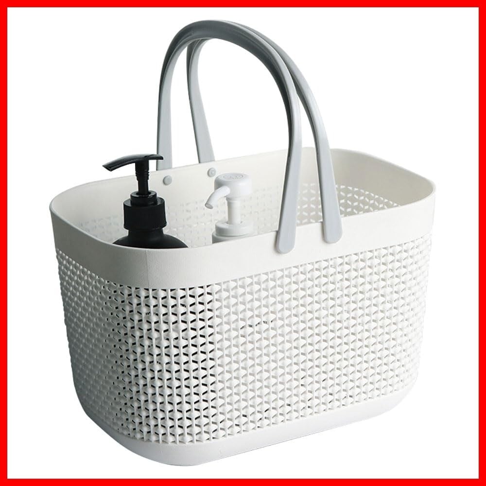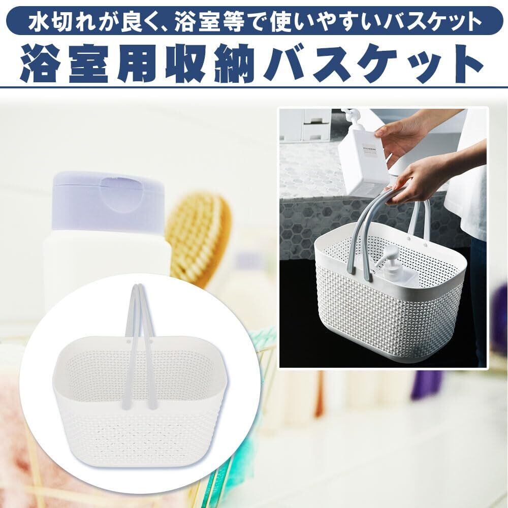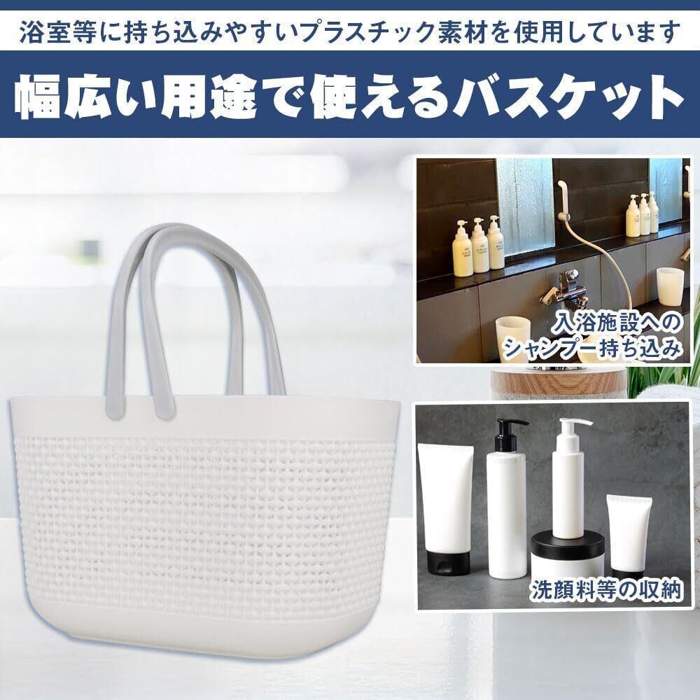 バスルーム用バスケット スパバッグ 水切り穴 通気性 持ち運び 大容量 手提げ (ホワイト)