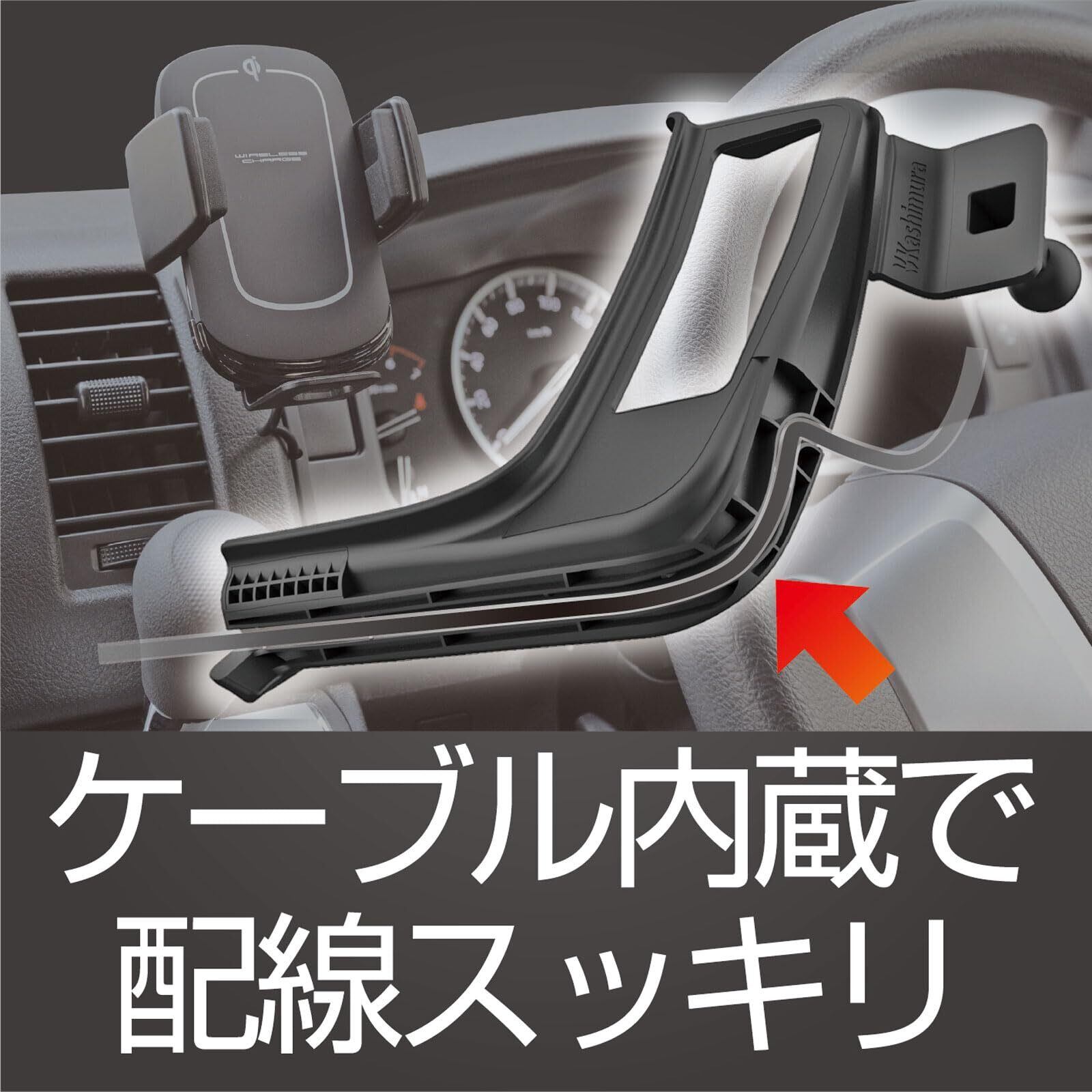 ワイヤレス充電(Qi)対応スマートフォンを置くだけで左右アームが自動でホールド。