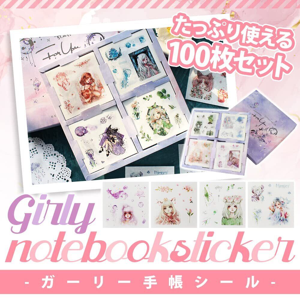 水彩風の可愛らしいロリータ少女モチーフのデザインが魅力的なシールです。カラーやデザインが豊富でたっぷり使えるのが嬉しい100枚セットです。