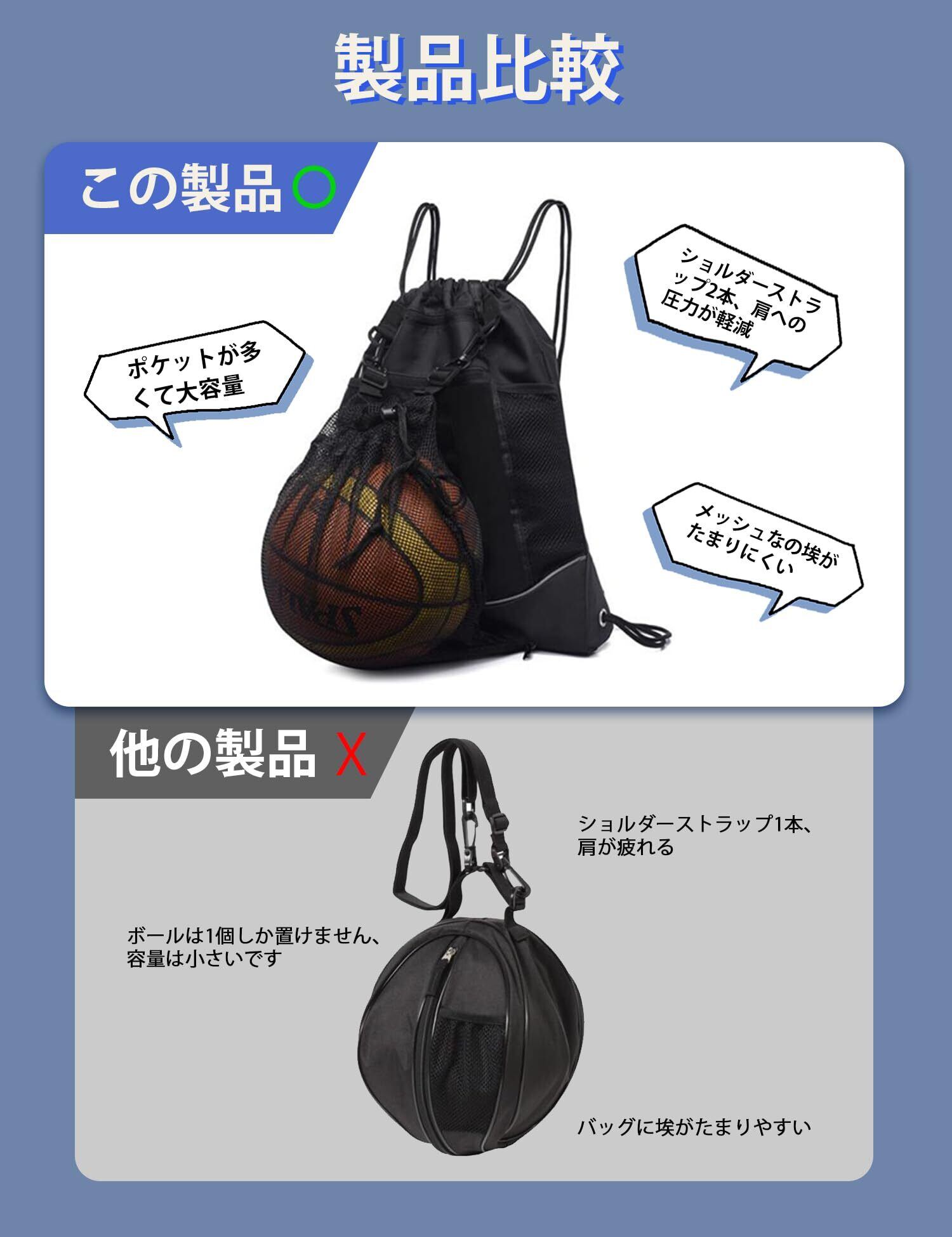 バスケットボールバッグ ボールバッグ リュック バスケットボール サッカーボール 入れ ボールケース ジムサック ナップサック スポーツバッグ 大容量 撥水 軽量 部活 運動 旅行用 メッシュ袋付