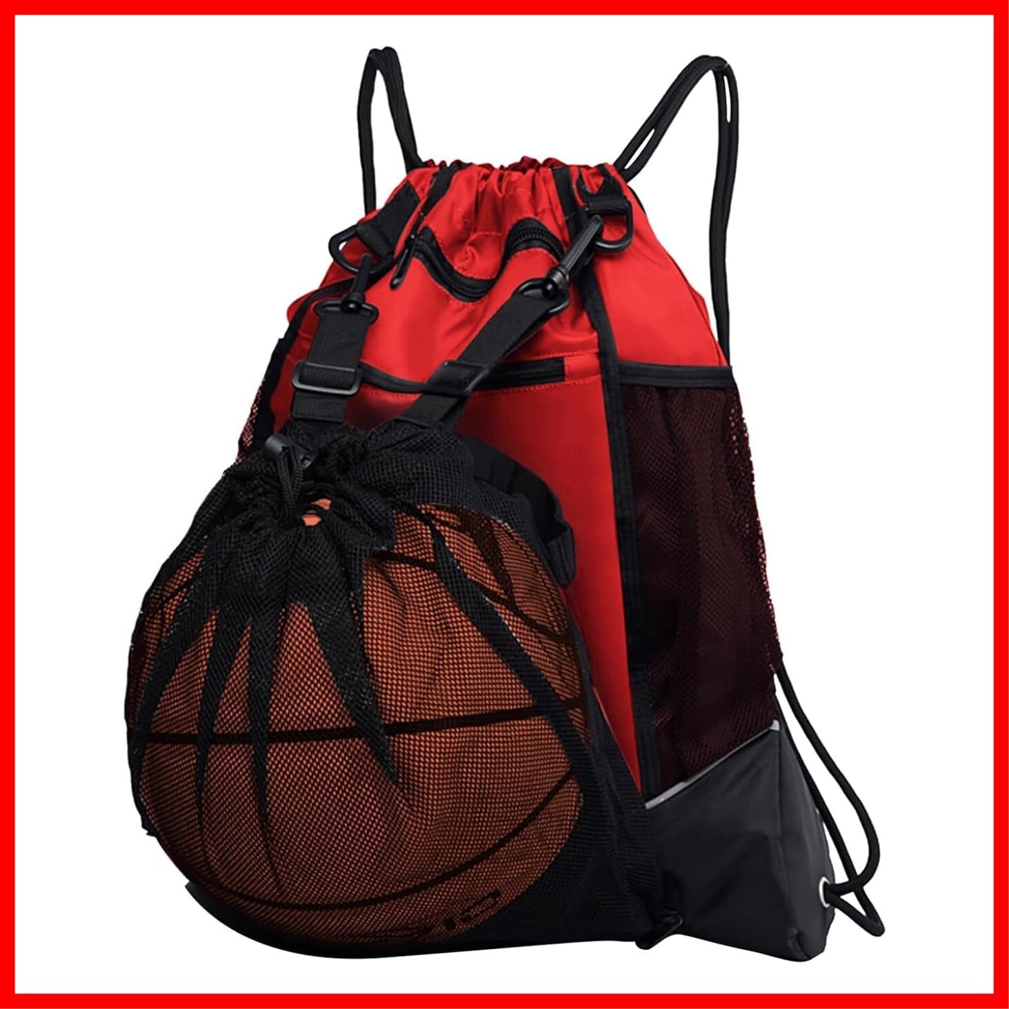 バスケットボールバッグ ボールバッグ リュック バスケットボール サッカーボール 入れ ボールケース ジムサック ナップサック スポーツバッグ 大容量 撥水 軽量 部活 運動 旅行用 メッシュ袋付 | hananoki