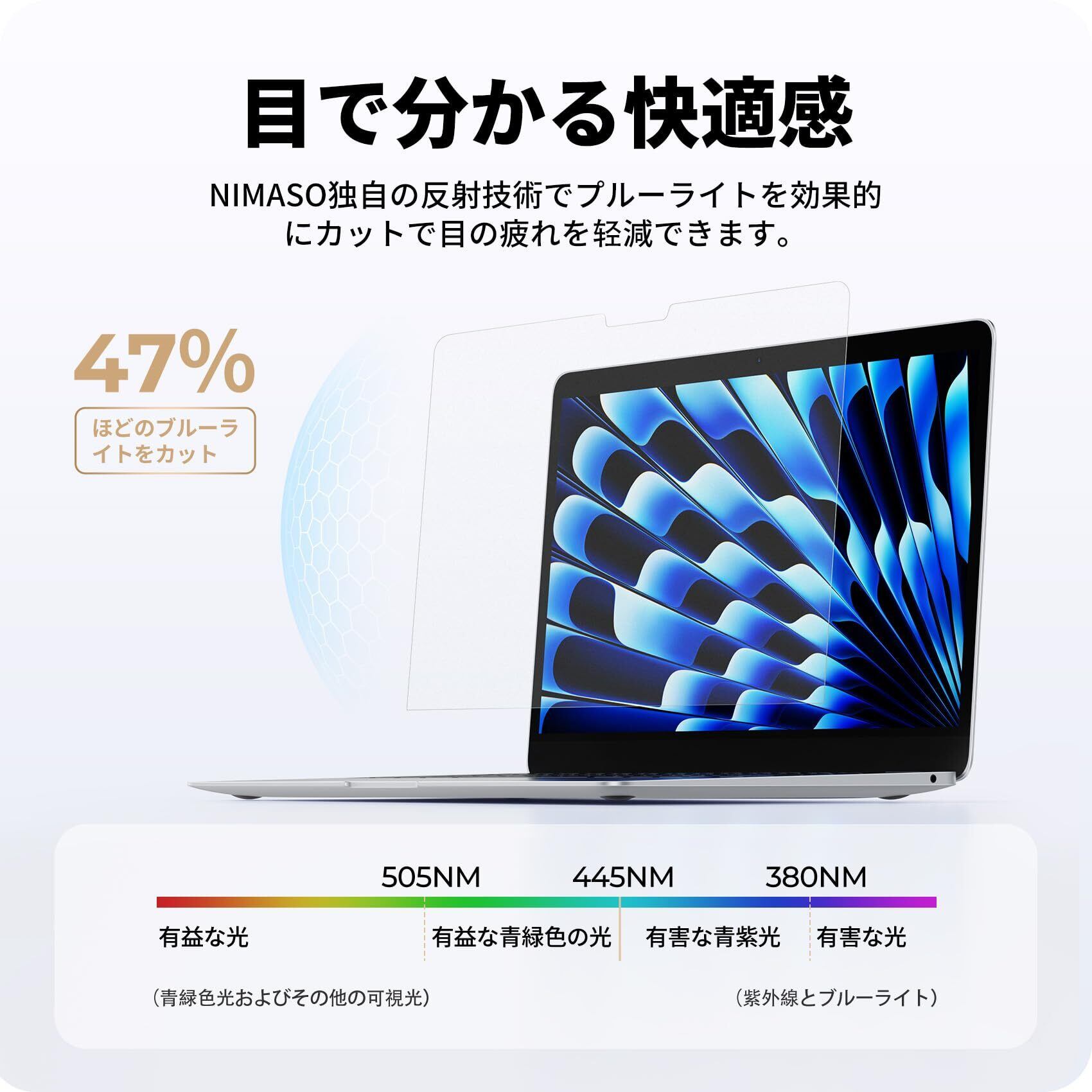 NIMASO 13インチ アンチグレア ブルーライトカット フィルム MacBook Air/Pro 13.3インチ 対応 マックブックエアー マックブックプロ M1 M2 2020 2022 保護フィルム 反射防止 気泡レス 指紋防止 NNB24C1171 | hananoki