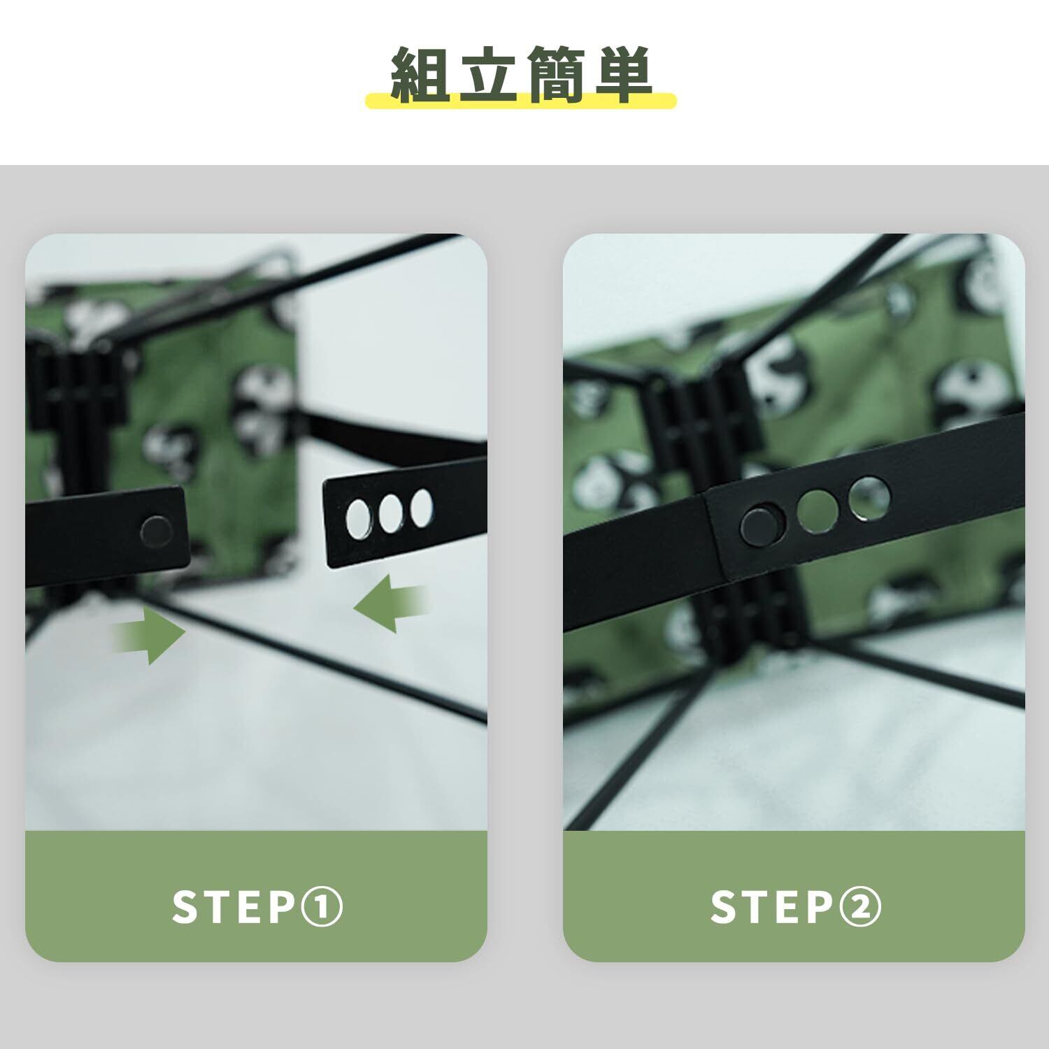 【組み立て簡単、3秒で収納できる!】収納バッグから取り出し、広げて、固定バンドを取り付けるだけで使え、組み立てが簡単なおりたたみいすです。3秒瞬間収納でき、とても小さくなり、コンパクトに持ち運べます!