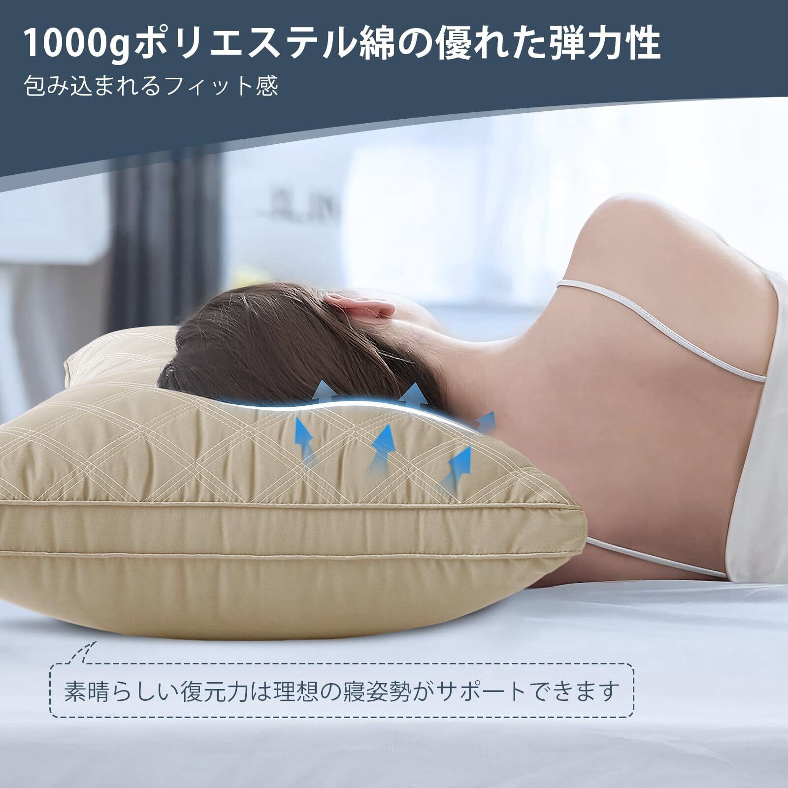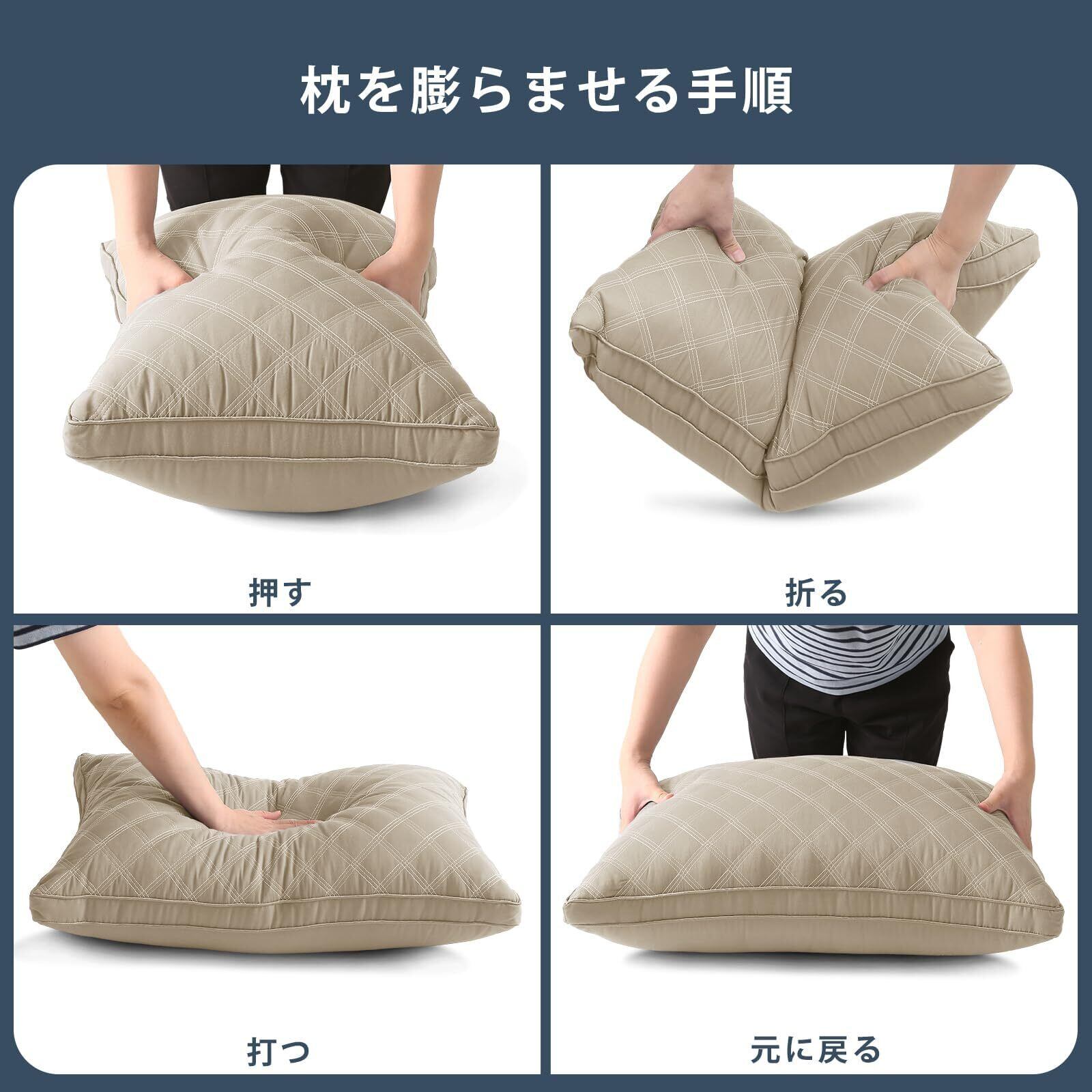 【高反発素材-復元力を持ち】厳選した高弾力の3Dポリエステル素材をボリュームたっぷりに詰め込み、ふっくらとした弾力を持つ同時にふんわり包み込まれる寝心地を実現します。適当な弾力で、頭部をしっかりサポートし、横向き寝・仰向け寝・うつ伏せ寝、お好きな寝姿でぐっすり眠れます。