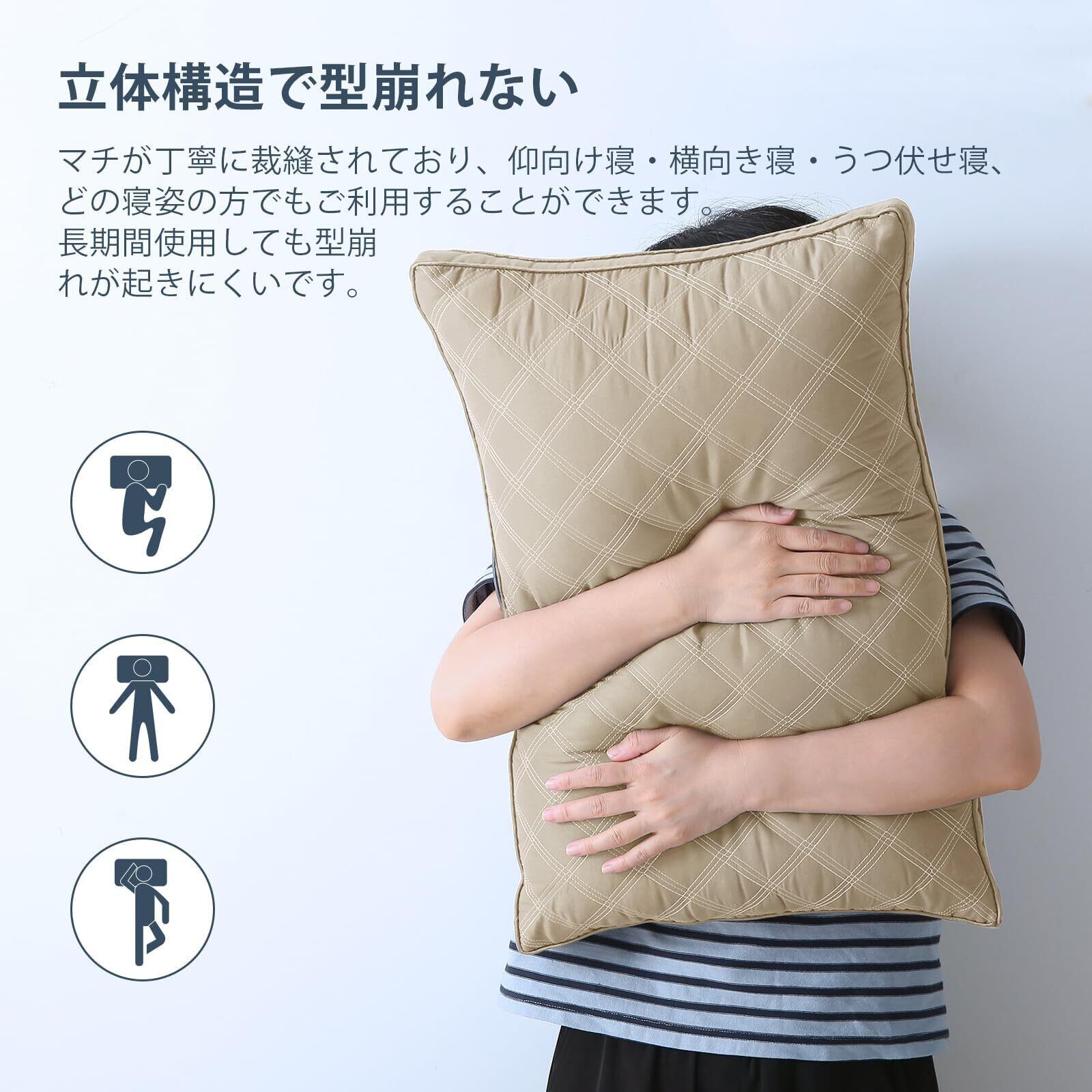 【立体構造-型崩れず】側生地にマチが付いているため、一晩を寝てもすぐに復元でき、へたりにくいです。長期間快適に利用できる枕です。
