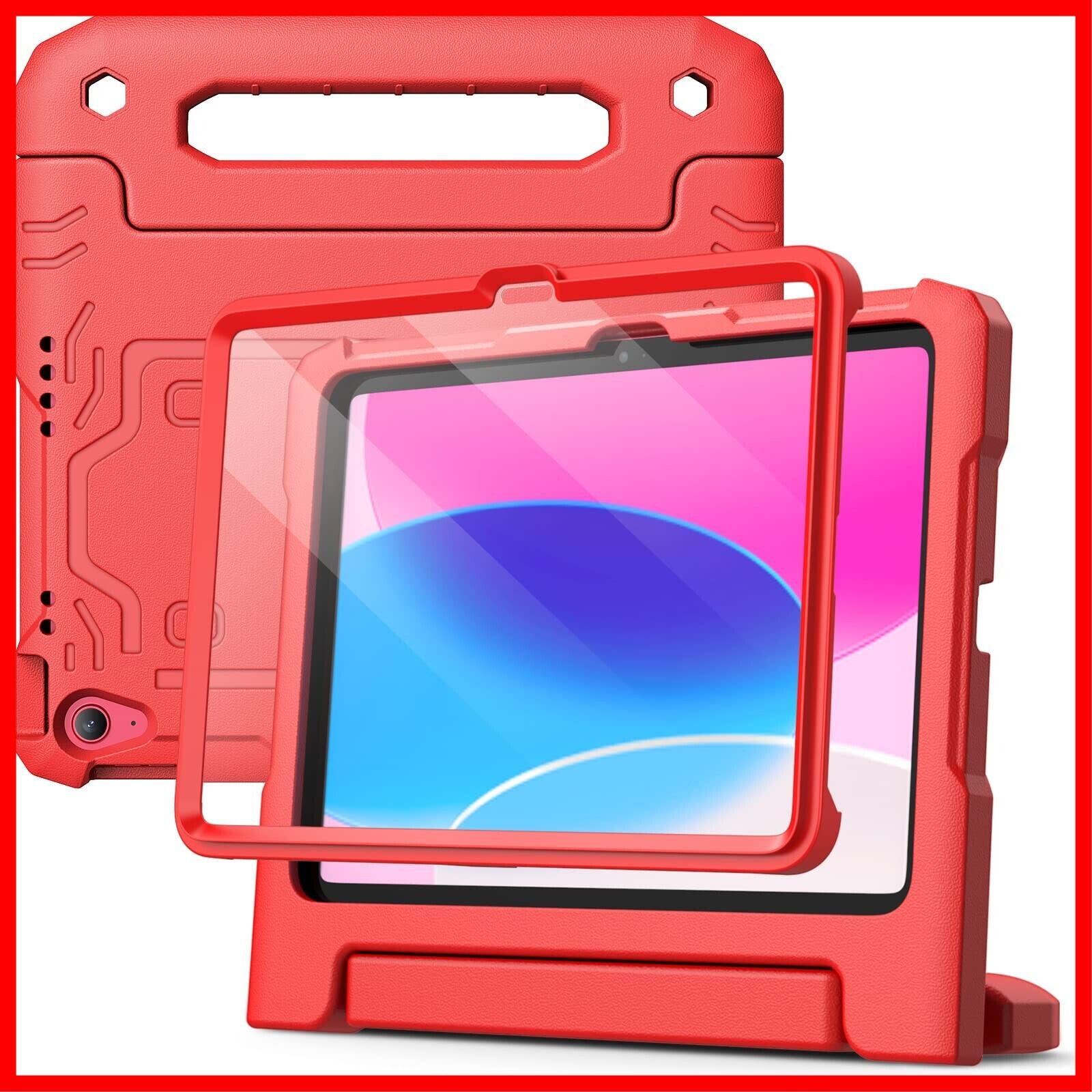 JETech 子供用 iPad(A16)ケース 第11/10世代(2025/2022モデル)用液晶保護フィルム付き 耐衝撃 フルボディハンドルスタンド タブレット保護カバー (レッド)