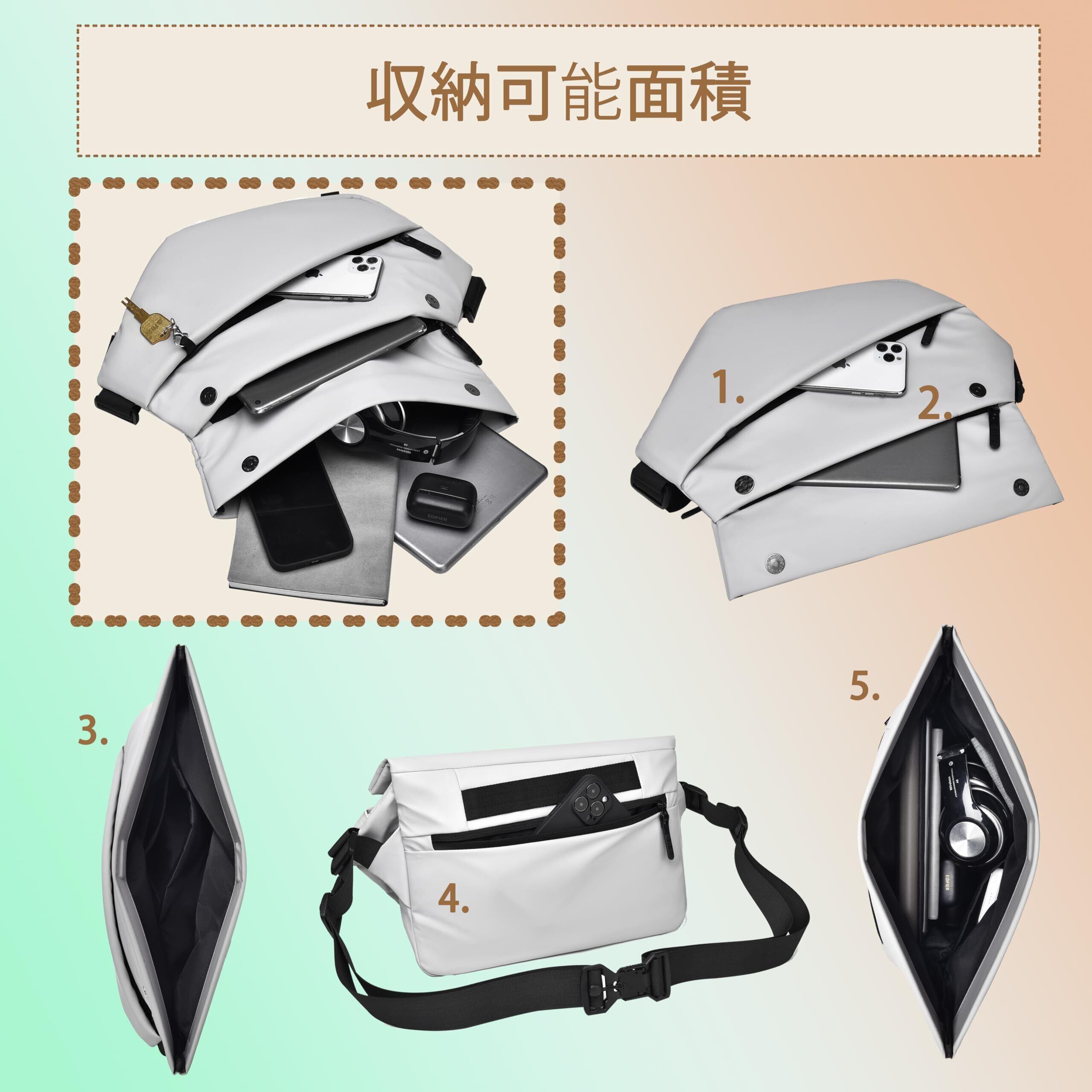 [FSD.WG] ボディバッグ 大きめ メンズ 斜めがけ ワンショルダーバッグ メッセンジャーバッグ ショルダーバッグ iPad収納可(L,12.9インチ;M,9.7インチ)大容量 軽量 通勤 通学 旅行 アウトドア 人気