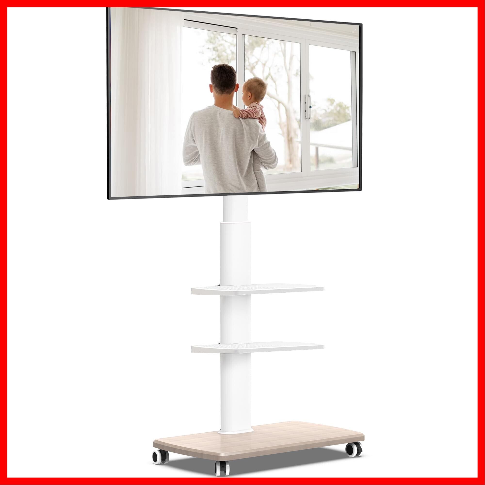 FITUEYES テレビスタンド 32~70型対応 キャスター付き 高さ角度調節可能 移動式 木目調 ホワイト 中段棚二枚付 棚板無階段調節 TT306504WW