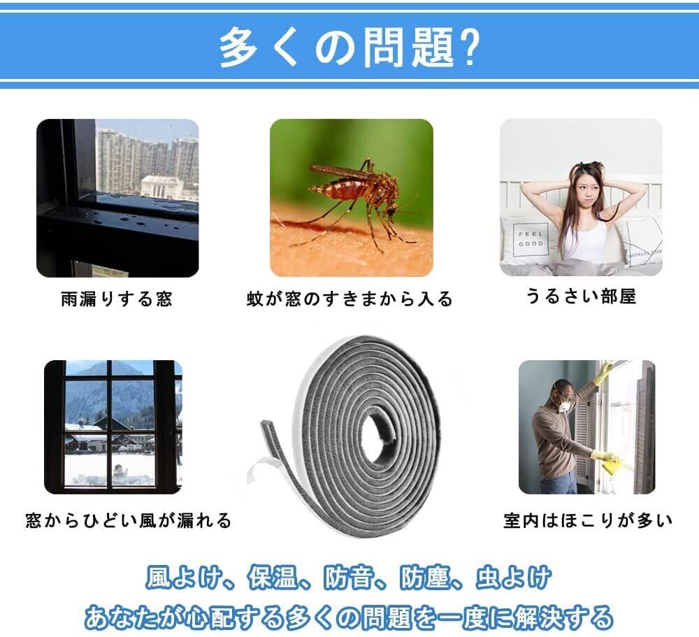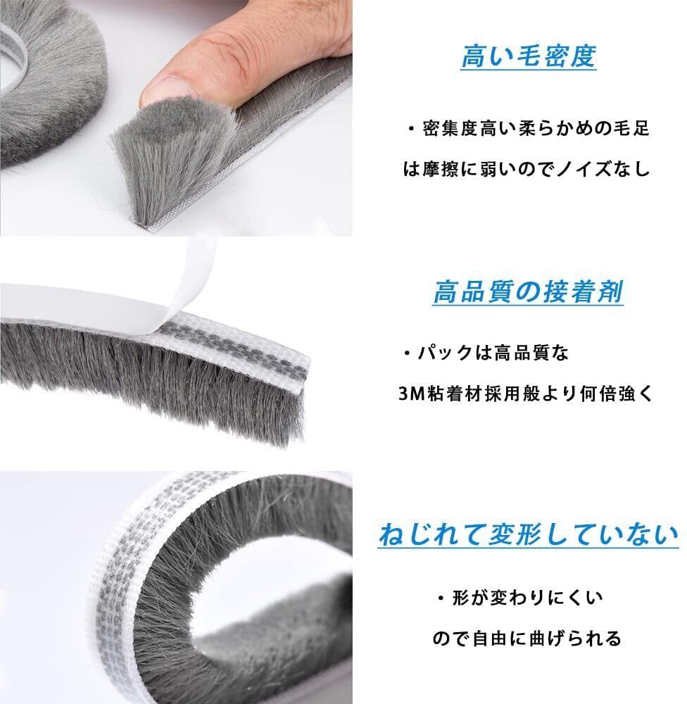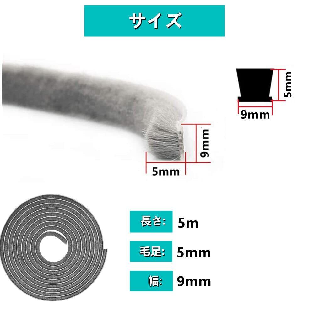 隙間テープ すきまモヘアテープ 毛足長い 超ロングサイズ 5m×9mm×5mm 虫よけすき間テープ 防寒 防音 防風 網戸用 玄関 ドア 隙間対策 (グレー)
