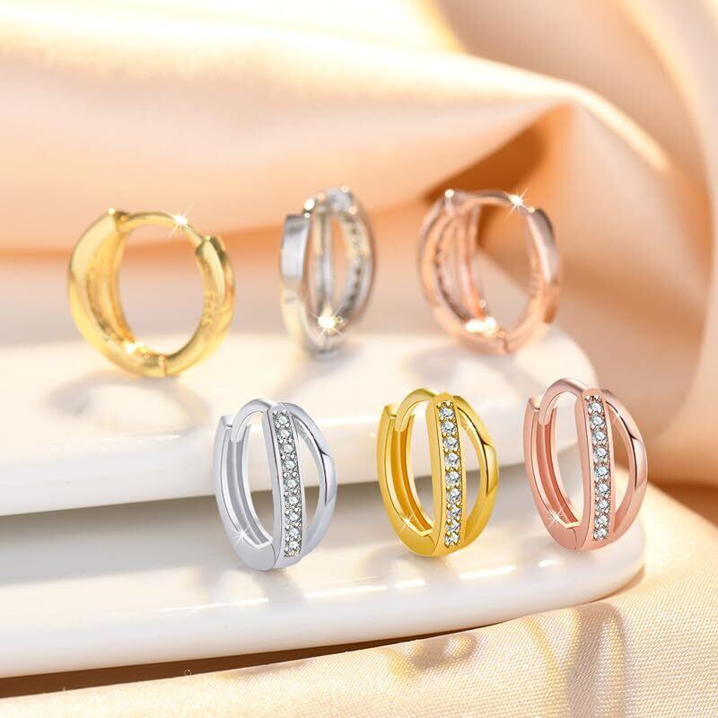 【サイズ】直径13mm 【素材】シルバー925 コーティング【重さ】1.2g(片耳) 【きれいめ華やかデザイン】二重に広がるリングピアスの片方にジルコニアを敷き詰め、温かみのあるリング本体と、輝くジルコニアをミックス。サイズにもこだわって設計し、小ぶりなまま存在感があるサイズ設計。 【柔らかい3色を選定】シルバー、ゴールド、ピンクゴールドの中でも、肌馴染みがよく柔らかい色みで作りました。華やかで上品ななかに、温かく優しい印象を感じられます。ジルコニアには、煌めき度が高いものだけを使用しています。 【金属アレルギー の方でも安心】シルバー925コーティング。金属アレルギーなど、肌が敏感な方でも優しく安全にお使いいただけます。 就職祝い、誕生日プレゼント、クリスマスプレゼントなど、ぜひご愛用ください。