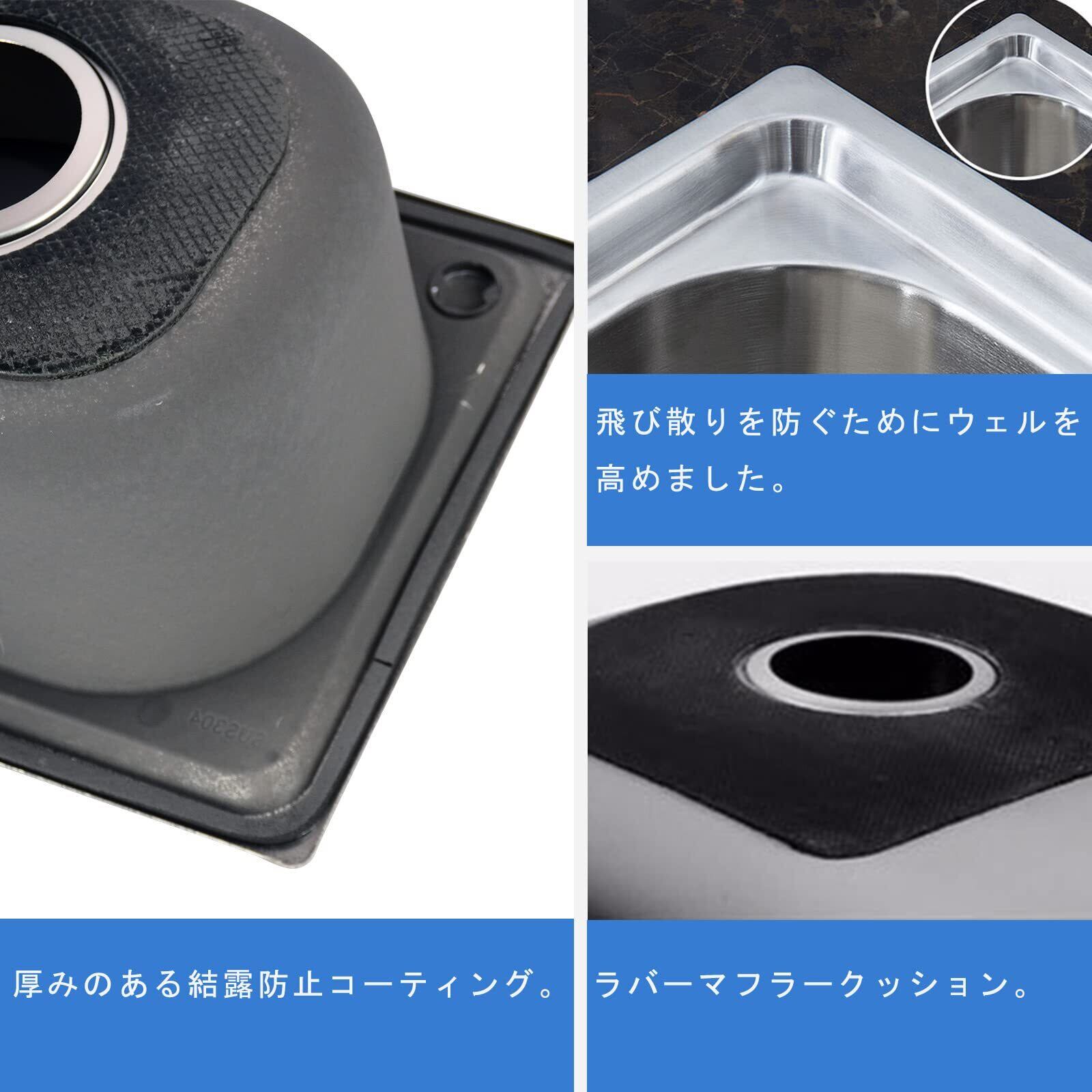 【付属品】排水管ホース・小型ゴミ受け付き(画像ご参照下さい) 。【性能】アンチノイズマット(静音効果)シンク一体(溶接なし防水性能up)。