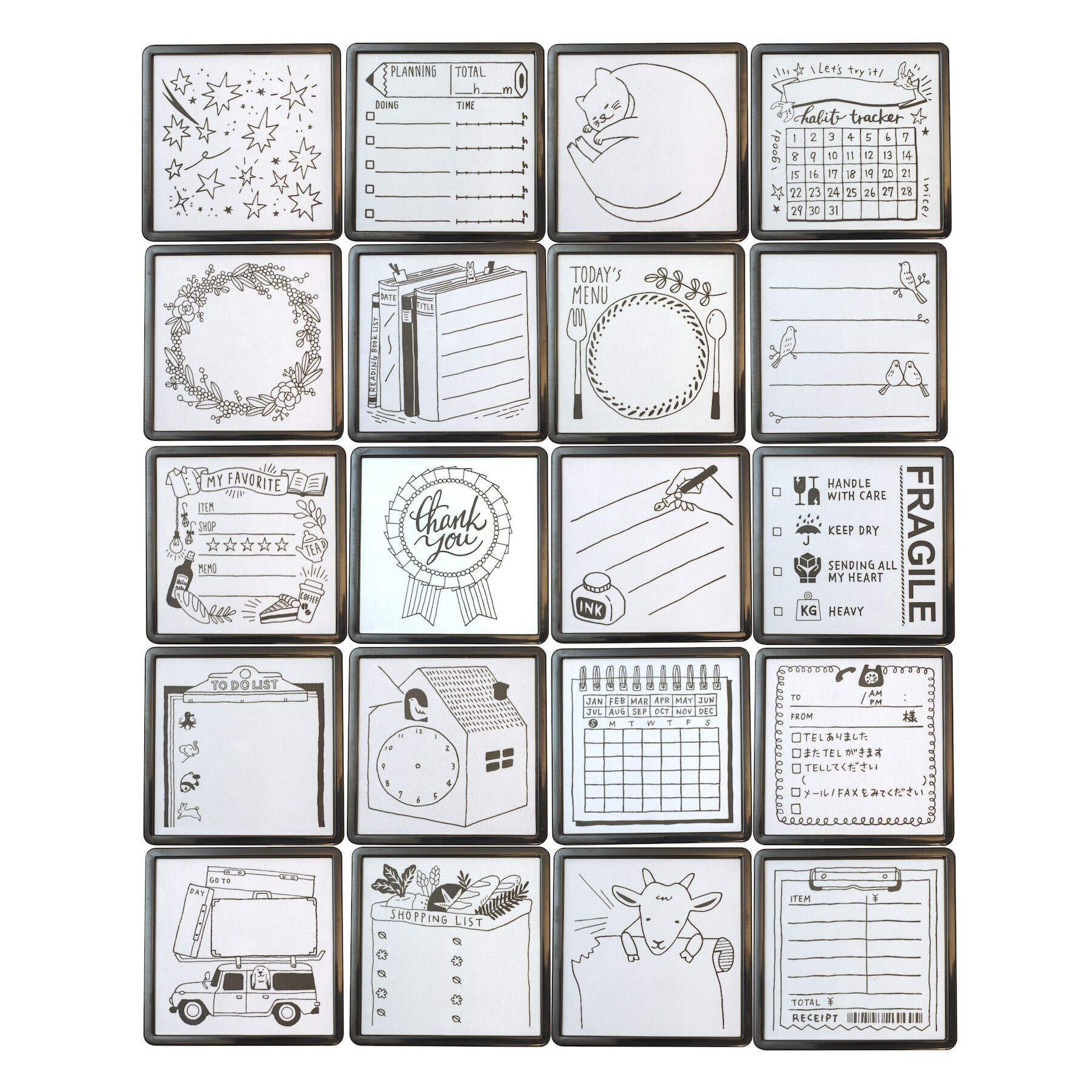 お気に入りのノートや付せんに書いた、記録やメッセージを楽しくデコレーション!何度でも簡単に楽しく押せます。