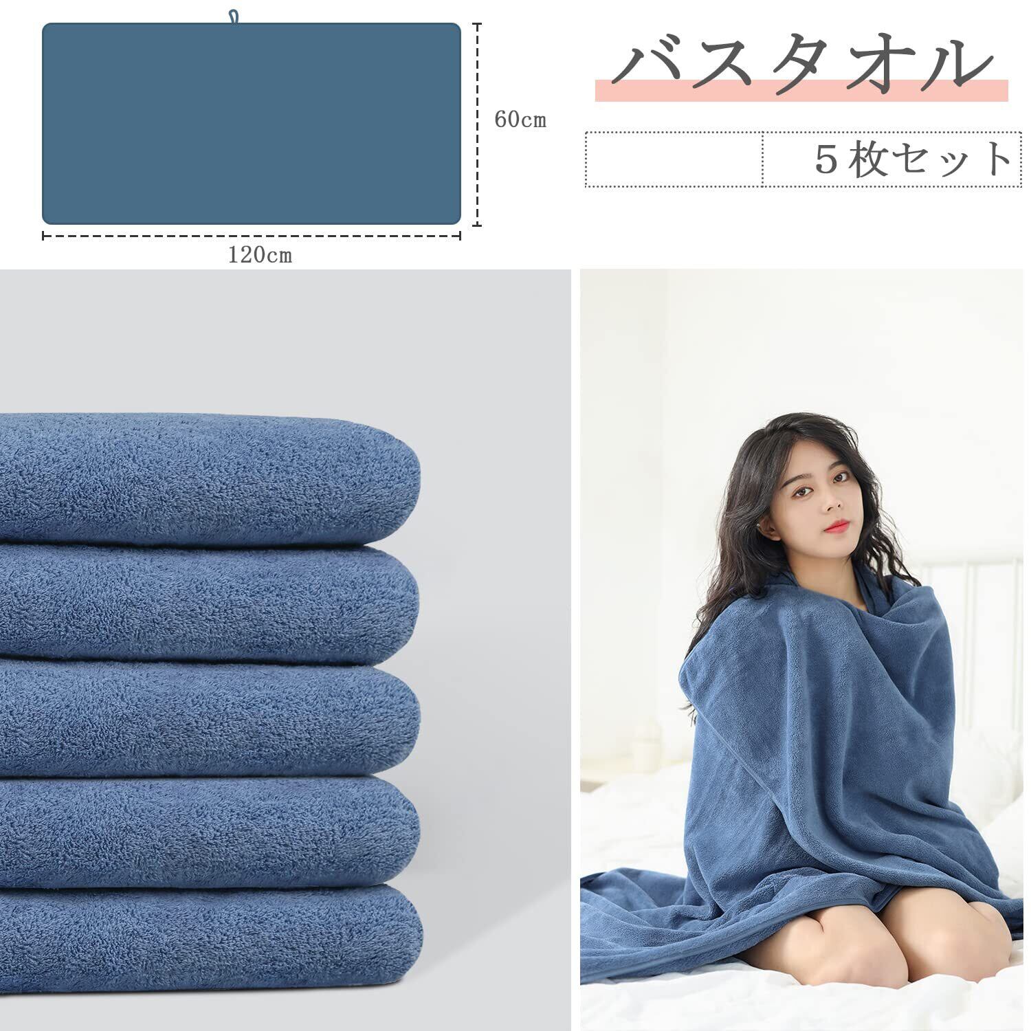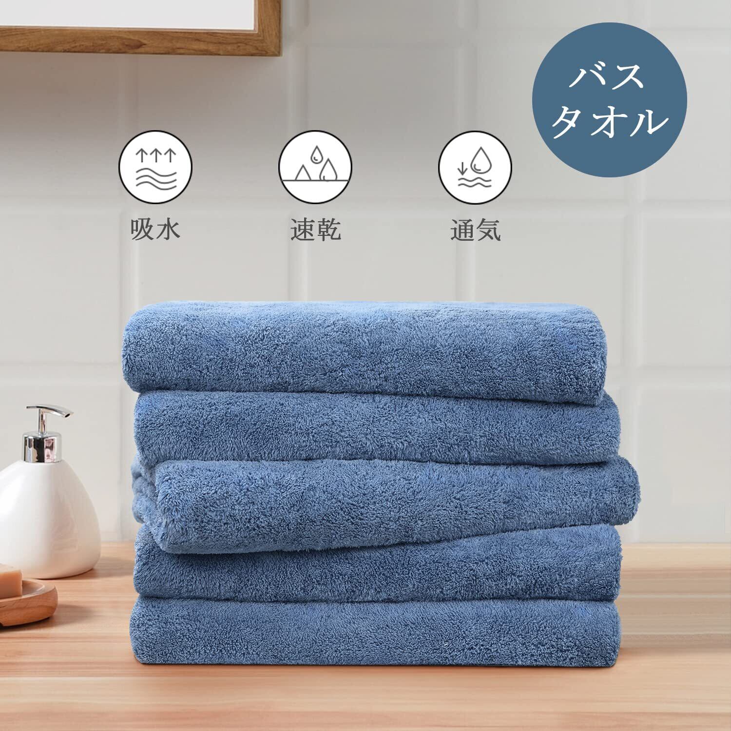 【バスタオル 5枚セット】素材:マイクロファイバー サイズ:約60x120cm/枚 セット内容:バスタオル 5枚セット カラー:ブルー