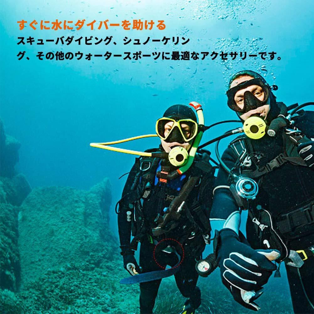 「役割」ダイバーが水中に潜れるようにするためのリードブロックや、カラビナ、収納袋などの機能的な各種アクセサリーと組み合わせて使用し、水中でダイバーを素早く手助けするダイビング用の重量支持装置です。