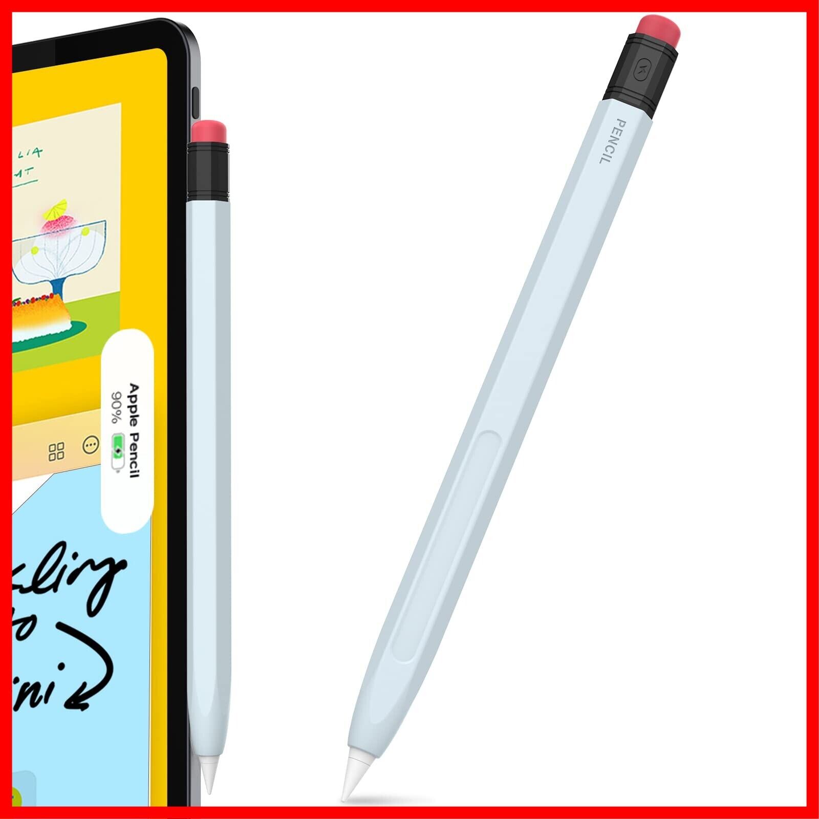 AhaStyle Apple Pencil Pro&Apple Pencil 第二世代用シリコン保護ケース 鉛筆レトロデザイン 柔らかなシリコン材質 Apple Pencil Pro&Apple Pencil 第二世代のみに適用 ワイヤレス充電対応 (ライトブルー)