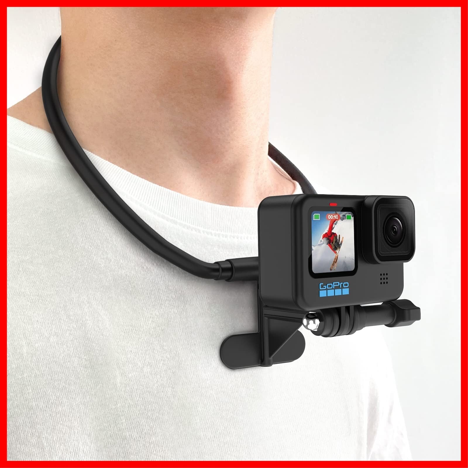 「ソフトで頑丈な素材」 首掛けの部分は柔軟で靭性があるシリコン素材を採用し、且つチューブ状のデザインで、首への負担を最小限に抑えられ、より快適に使用できます。マウントの部分は上質のABS素材及びハードなPC素材で作り上げ、しっかりとGoPro、スマホなどを固定し、安定した撮影体験を与えます。