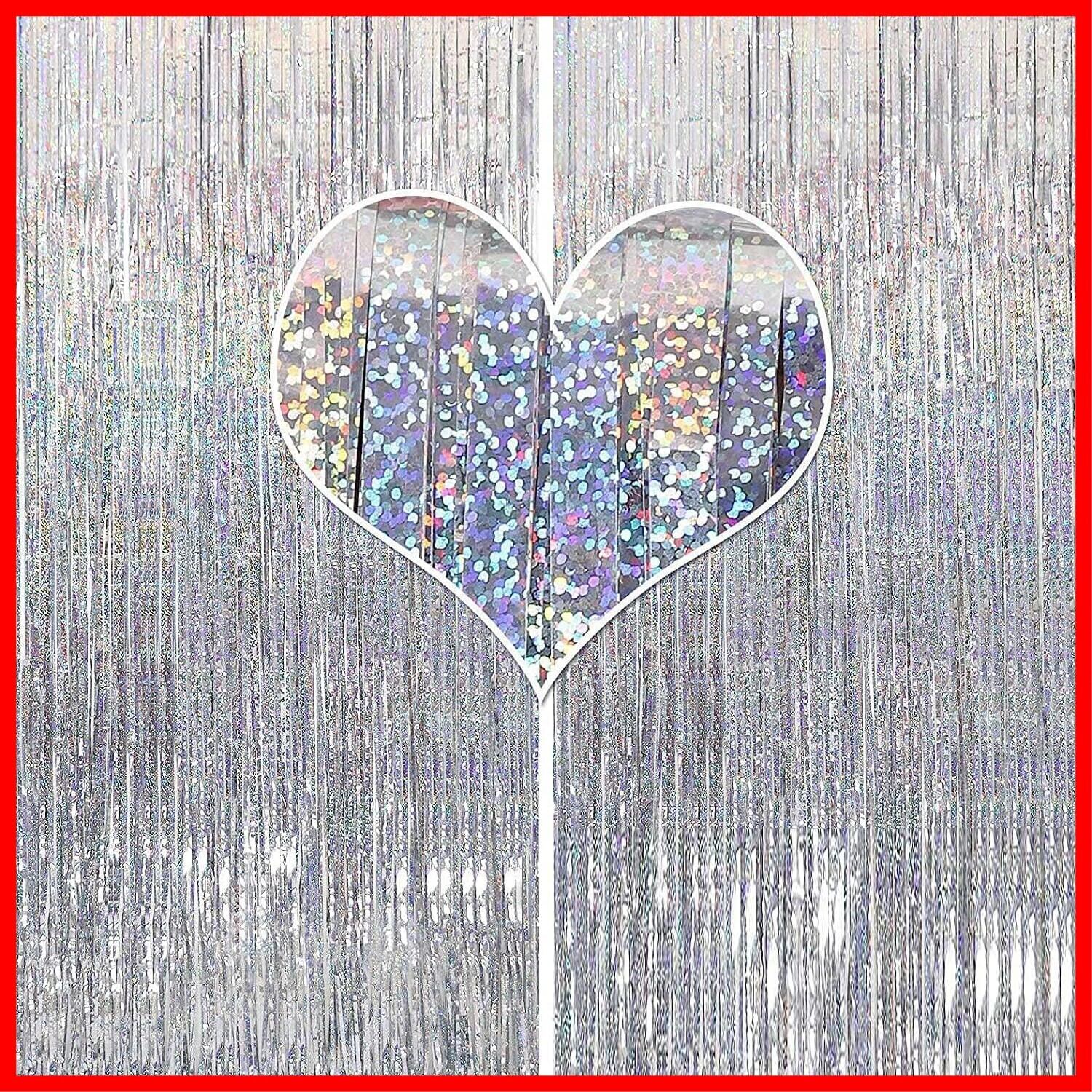 2個セット タッセル キラキラ 背景 明るい光沢 誕生日 飾り付け パーティー 結婚式 舞台 空間デコレーション バックドロップ ホイルカーテン フォトブース カラフル party decoration 100cm*250cm (シルバー) | hananoki