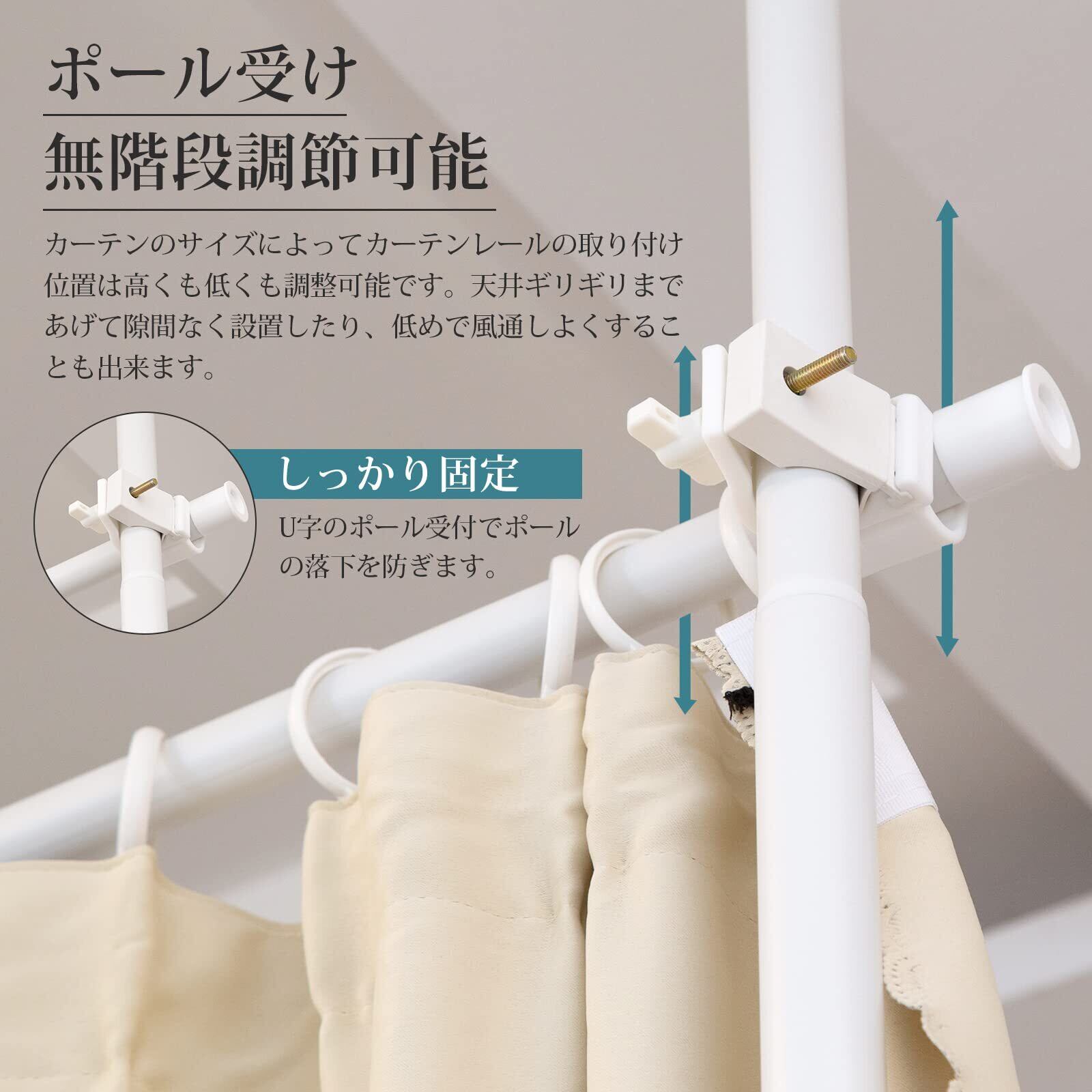IMIEE つっぱり式 間仕切り 部屋仕切り 間仕切りカーテンポール つっぱり棒 パーテーション カーテンレール カーテンリング付 幅-高さ110cm-310cm×奥行9cm (マッドホワイト,2ポール)