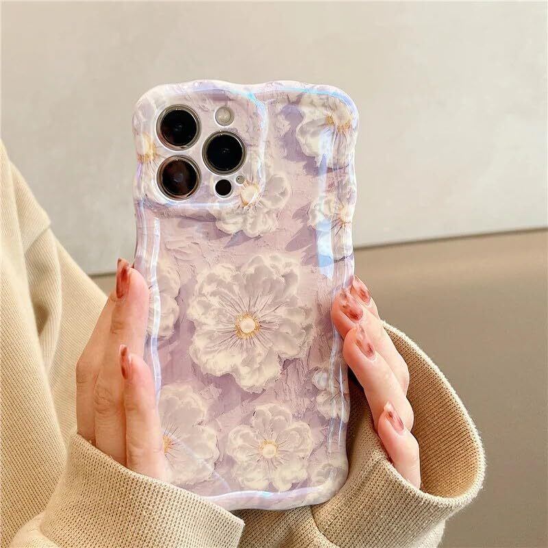 QLTYPRI iPhone 14ケースTPUカバー おしゃれ 韓国 可愛い 花柄 ウェーブ 薄型 軽量 耐衝撃 スマホケース ワイヤレス充電対応 ストラップホール付き アイフォン14 ケース 6.1インチ 対応 - パープル #2 | hananoki