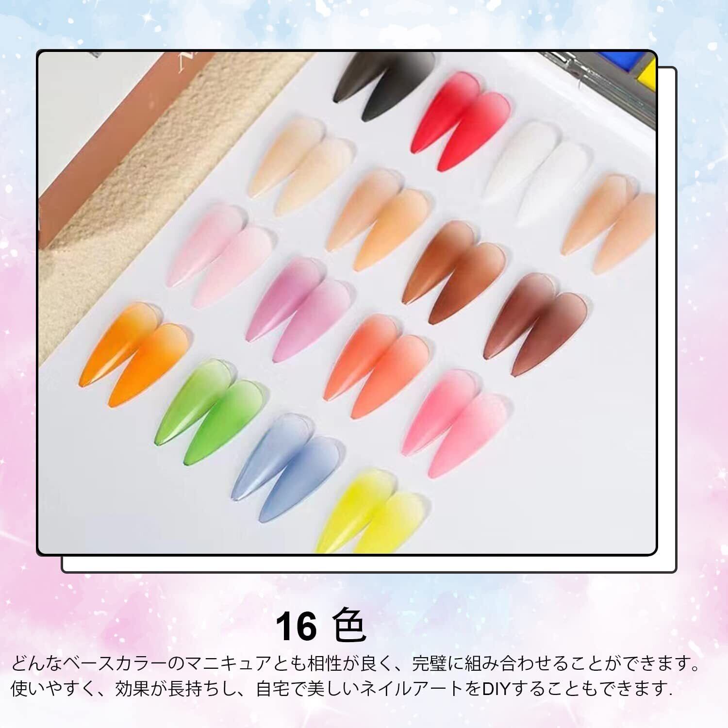 【16色ネイルアートグラデーションパウダー】16色のミラーパウダーが1箱に。 さまざまな色でネイルアートを楽しむことができます。 1色を単独で使ったり、2色を組み合わせてグラデーションを作ることもできます。 春のマニキュア、夏のマニキュア、秋のマニキュア、冬のマニキュアにとてもきれいです。