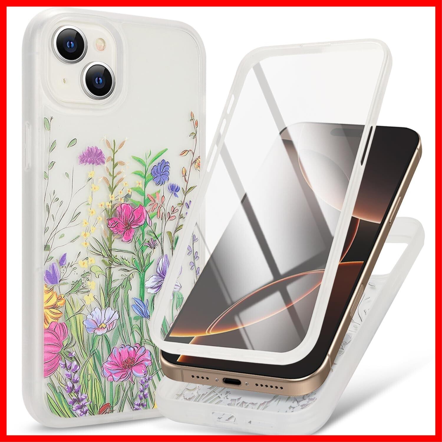 Lipvina iPhone 15用ケース 両面強化ガラス全面保護 可愛い花柄 クリア 米軍耐衝撃規格準拠 半透明マットな質感 黄変防止加工済み 縦横対応で使いやすいデザイン アイフォン 15透 ケース・スマホケースiPhone 15 ProMax 人気6.1インチ | hananoki