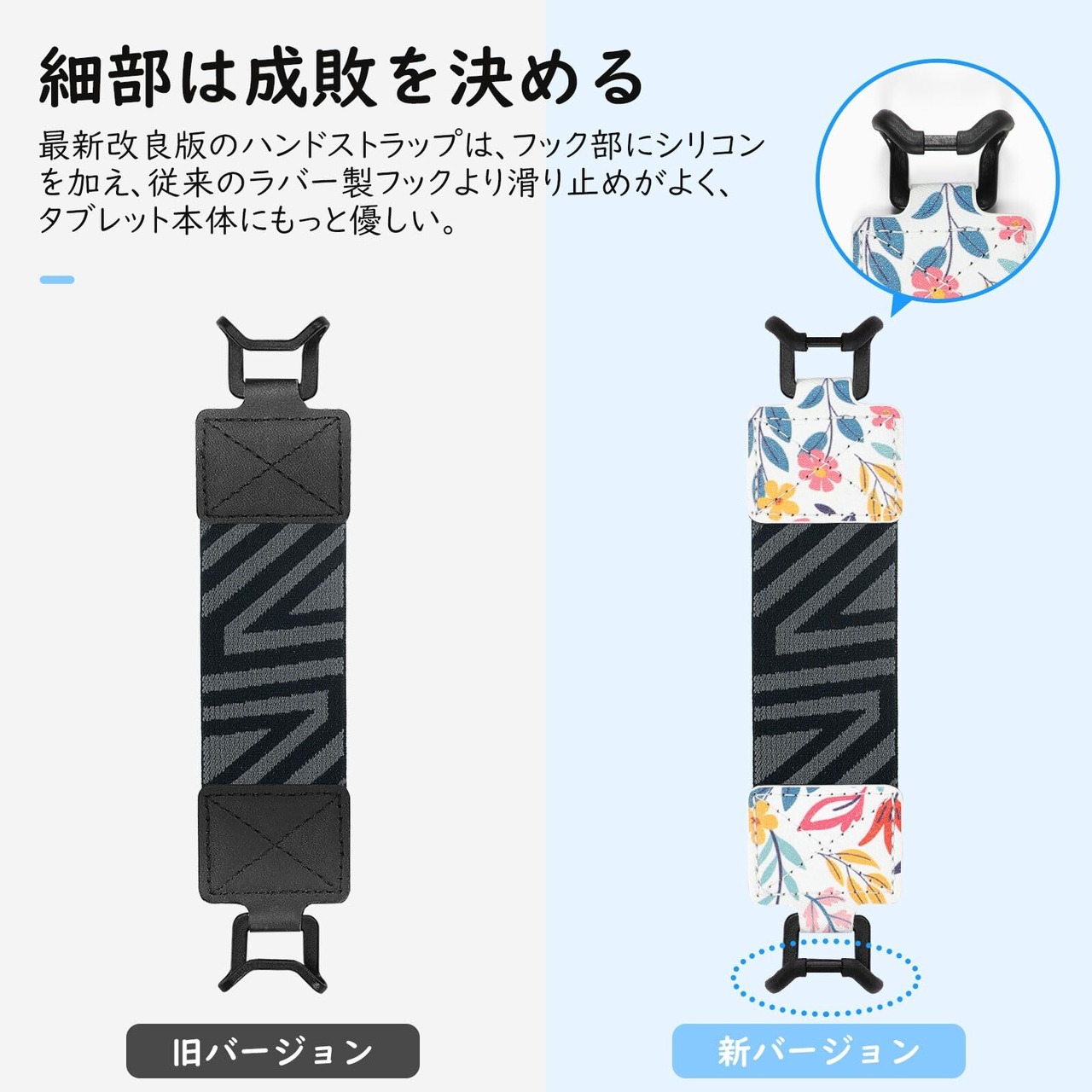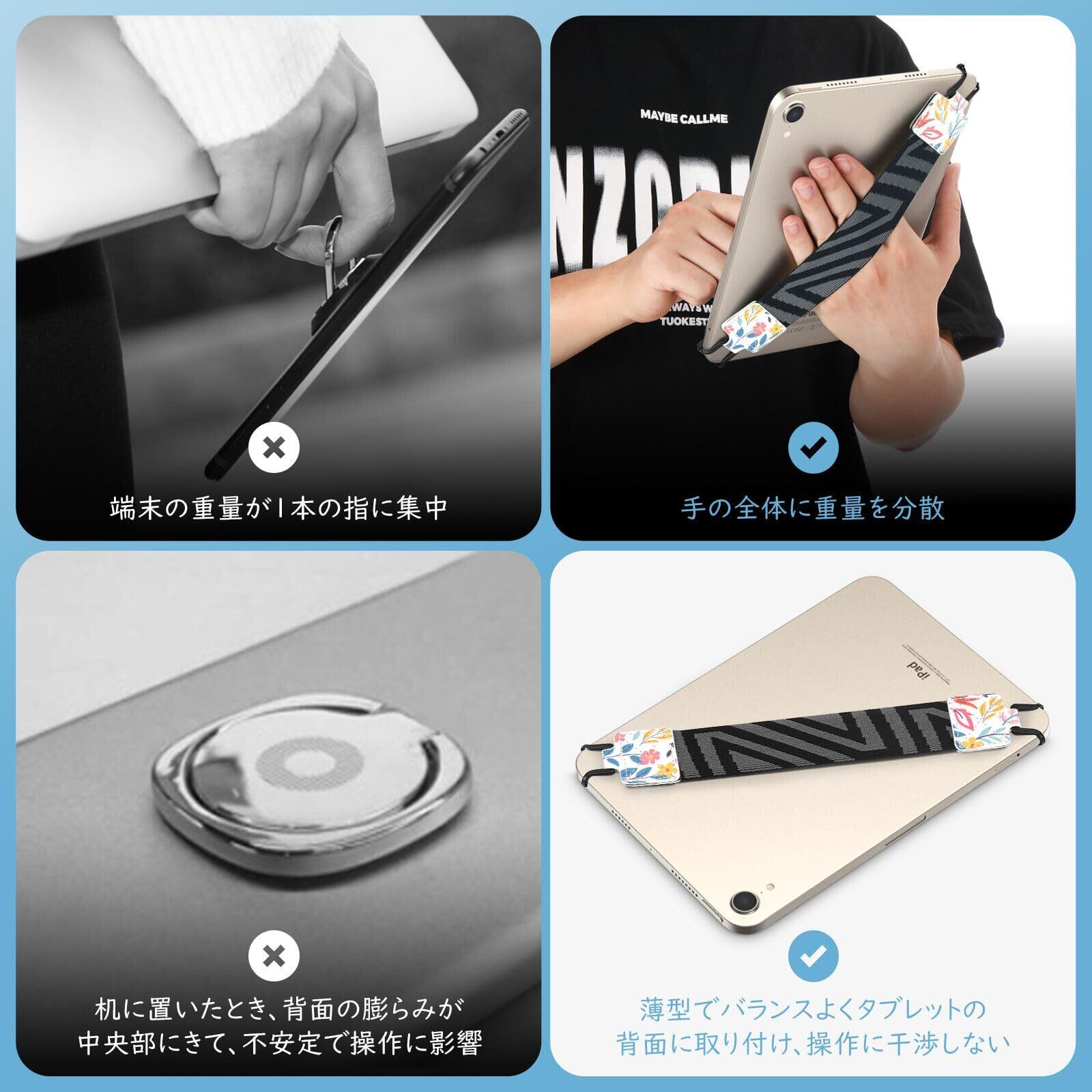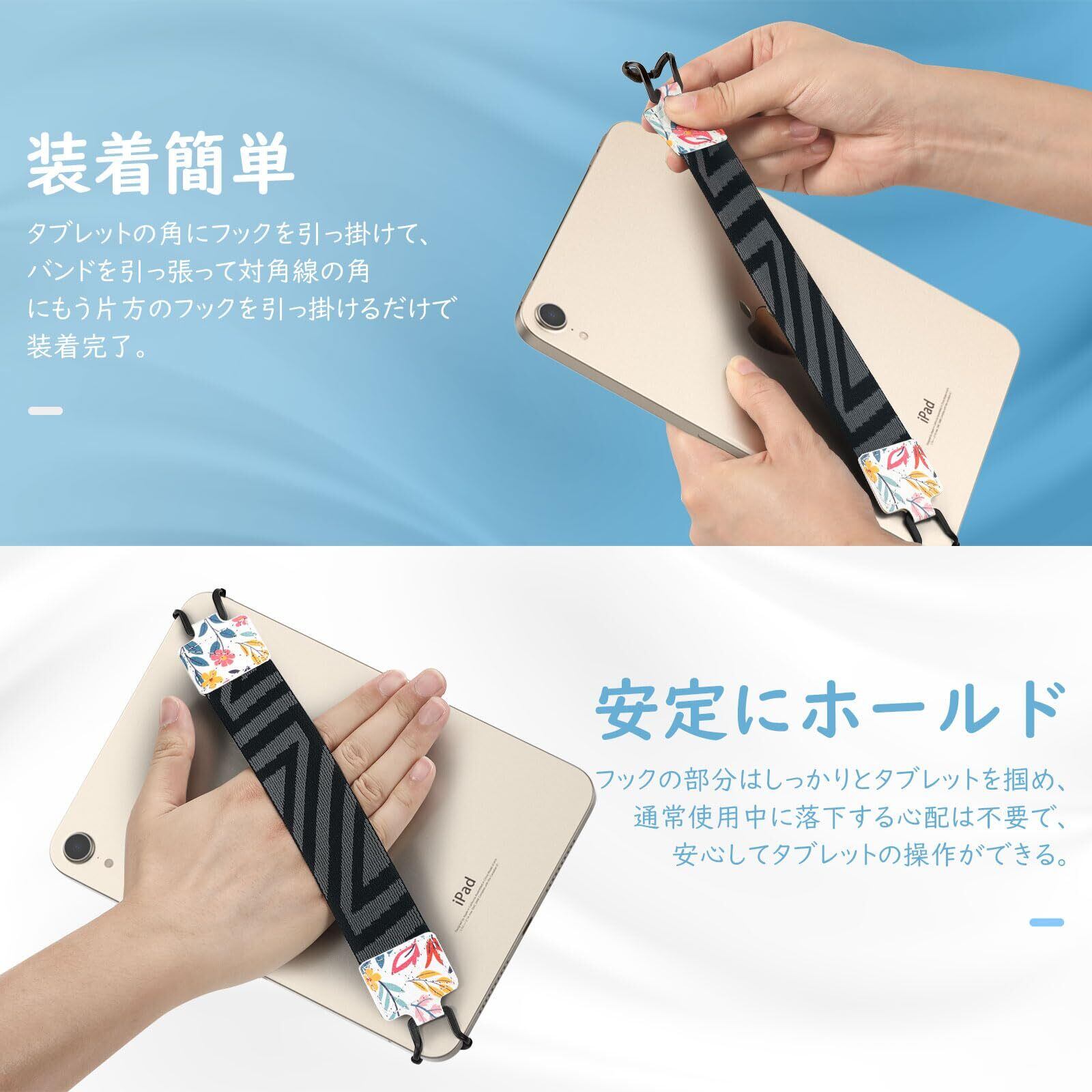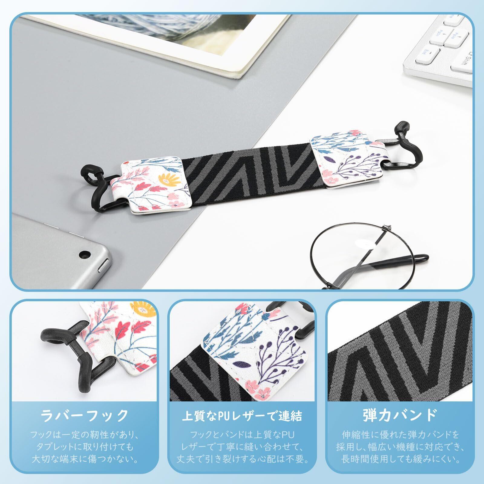 タブレットバンド Dadanism シリコンフック タブレット ハンドストラップ タブレット用ハンドバンド タブレットホルダー 片手持ち 落下防止 簡単脱着 6-8インチ対応 対応-iPad Mini 7/6/5/4/3/2/1 ペーパーホワイトお花柄 | hananoki