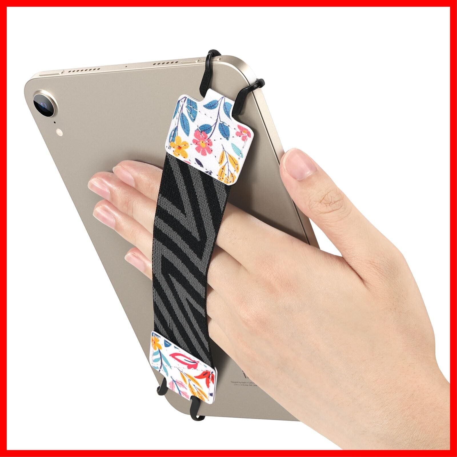 タブレットバンド Dadanism シリコンフック タブレット ハンドストラップ タブレット用ハンドバンド タブレットホルダー 片手持ち 落下防止 簡単脱着 6-8インチ対応 対応-iPad Mini 7/6/5/4/3/2/1 ペーパーホワイトお花柄