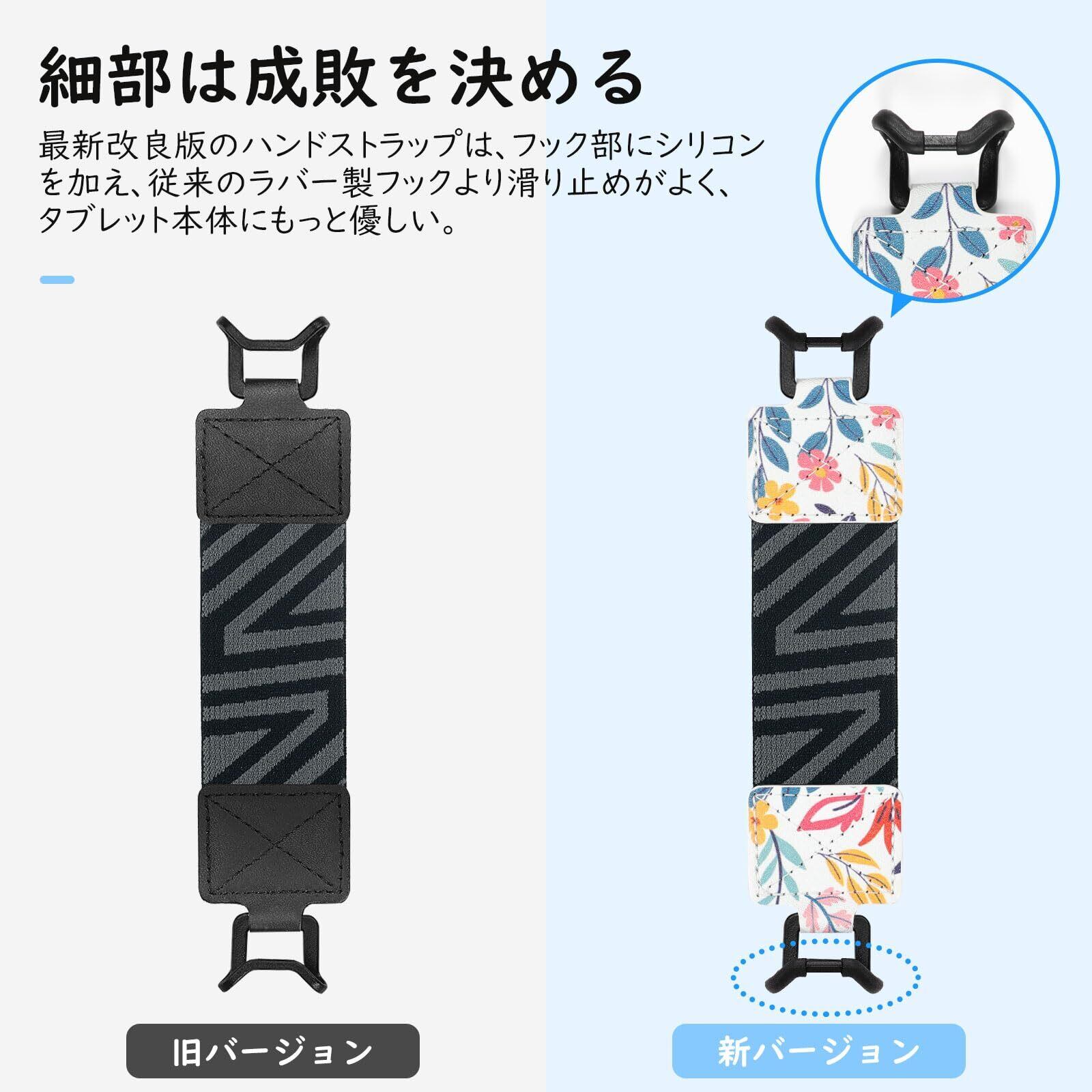 「上質素材採用」 優れた伸縮性がある弾力バンドを採用し、幅広い機種に対応でき、長時間使用しても緩みにくいです。上質なPUレザーを使用してフックの部分と丁寧に縫い合わせて、丈夫で引き裂けする心配は不要です。フックの部分はお客様のご意見を元に改良し、ラバー+シリコンの素材を採用し、タブレットに取り付けても大切な端末に傷つきませんし、滑り止め性能をより一層高め、安心してご利用いただけます。