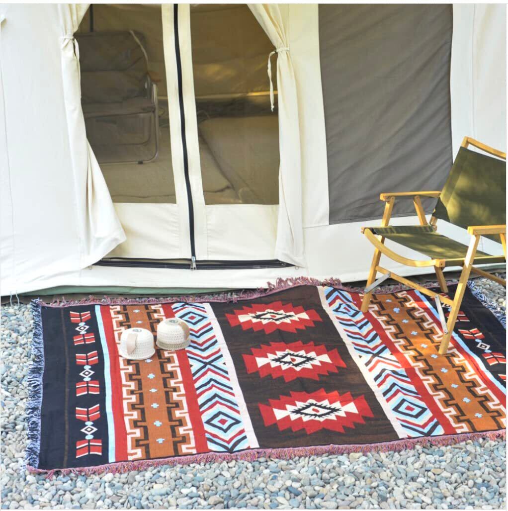 Peel Forest エルパソブランケット マルチカバーメキシカンラグ ネイティブ柄 オルテガ柄 キャンプラグ サドルブランケット 車中泊マット アウトドア バンライフ 130X160cm……… | hananoki