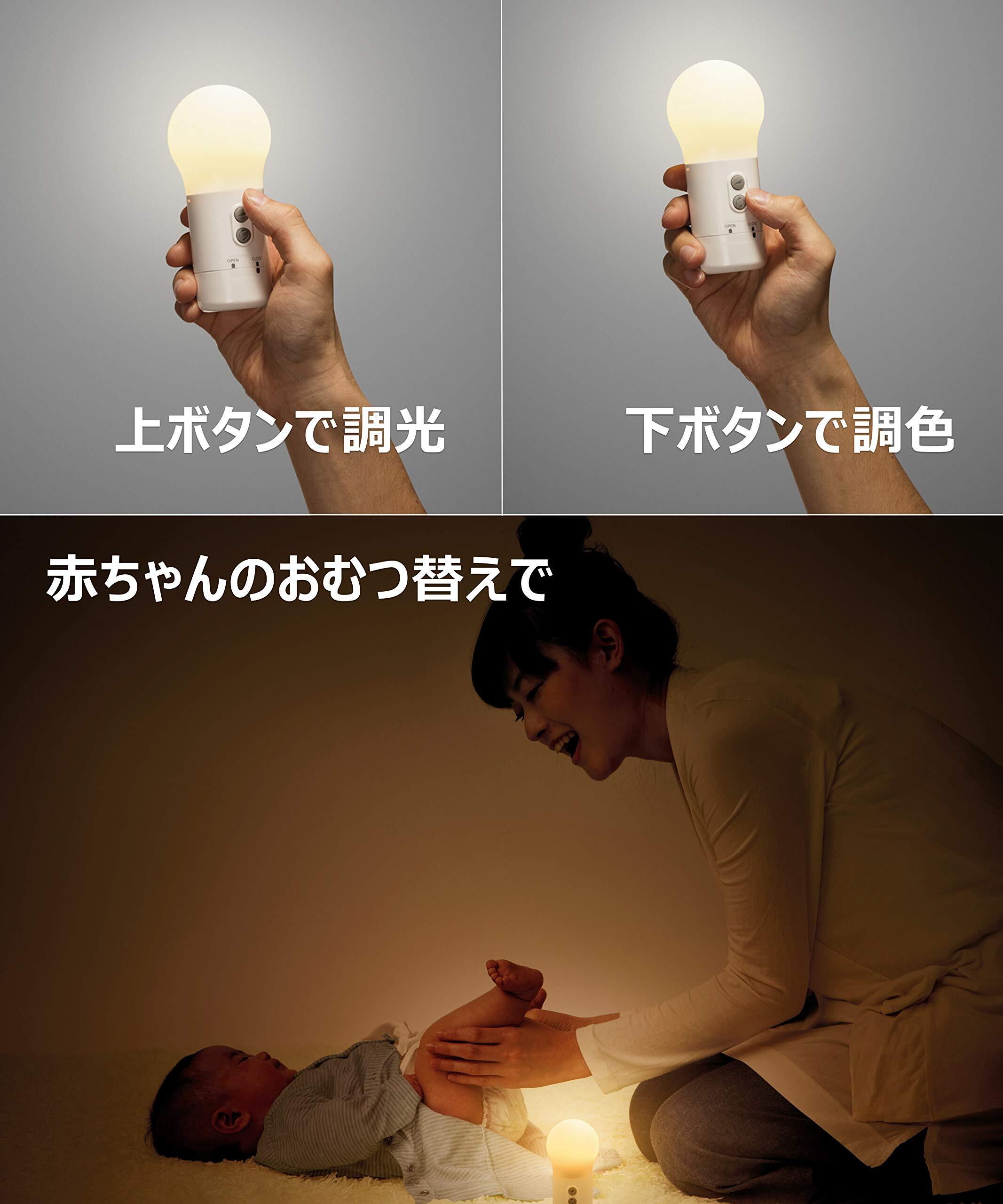 調光(6段階)・調色(3色)機能で使用シーンに合わせて明かりを調整可能!