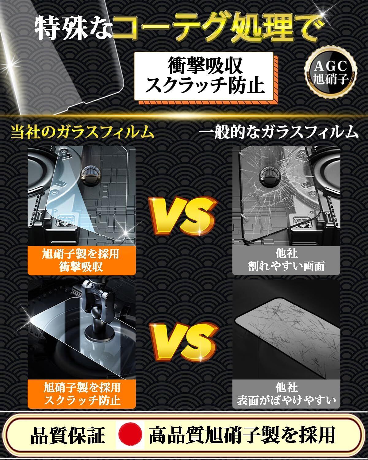 【表面硬度9H!飛散防止】日本製素材旭硝子製を採用しております、高品質な素材で衝撃を緩和し画面の破損を最低限まで抑えます。9H硬度で、ハードコーティング技術により、衝撃を緩和し画面の破損を最低限まで抑え、すり傷や指紋からもスクリーンをしっかりと保護します。