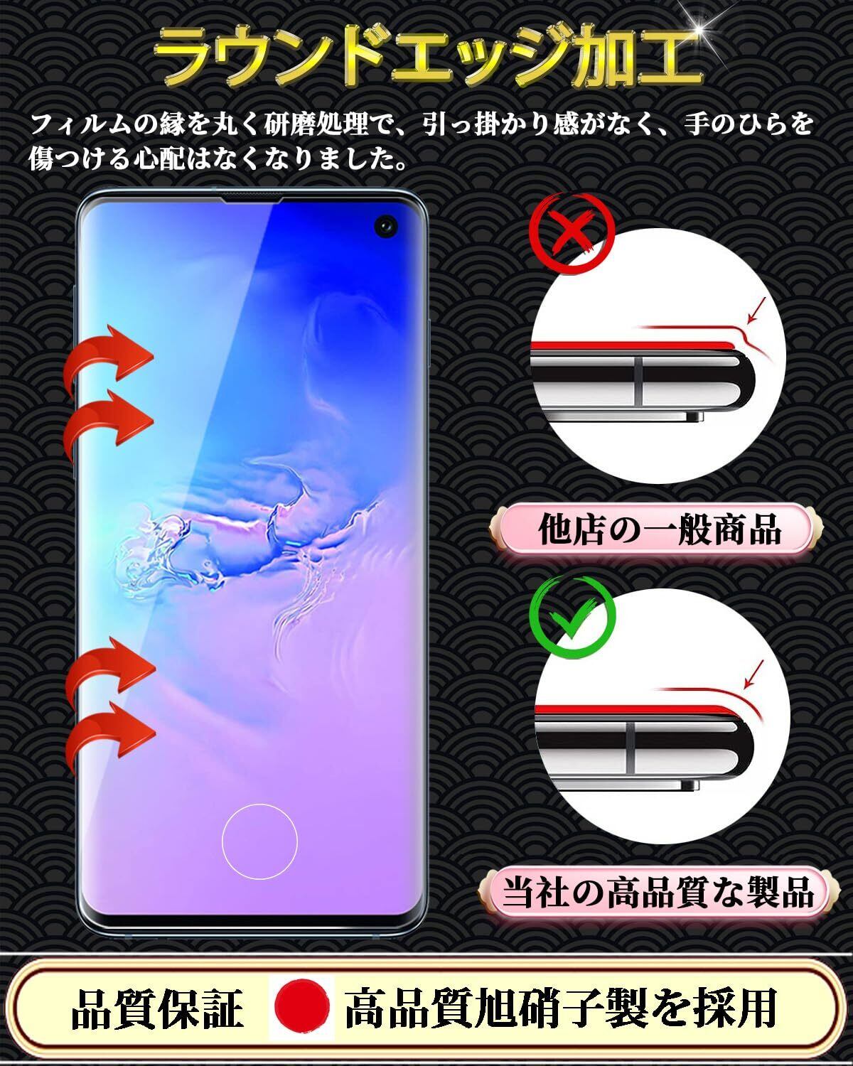 対応 Galaxy S10 全面保護 ガラスフィルム SC-03L / SCV41 強化ガラス 全面フイルム ギャラクシーS10 液晶保護フィルム 指紋認証対応 日本旭硝子製 全面保護 硬度9H 高透過率 気泡ゼロ 飛散防止 簡単貼り付 耐衝撃 自動吸着 スクラッチ防止【1枚入り】 | hananoki