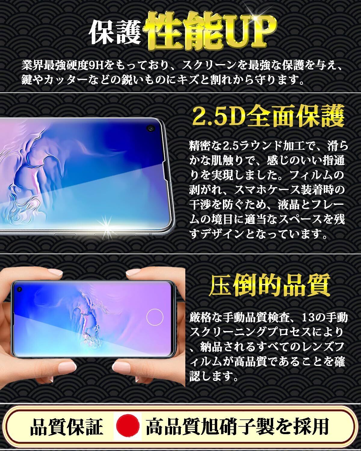 対応 Galaxy S10 全面保護 ガラスフィルム SC-03L / SCV41 強化ガラス 全面フイルム ギャラクシーS10 液晶保護フィルム 指紋認証対応 日本旭硝子製 全面保護 硬度9H 高透過率 気泡ゼロ 飛散防止 簡単貼り付 耐衝撃 自動吸着 スクラッチ防止【1枚入り】