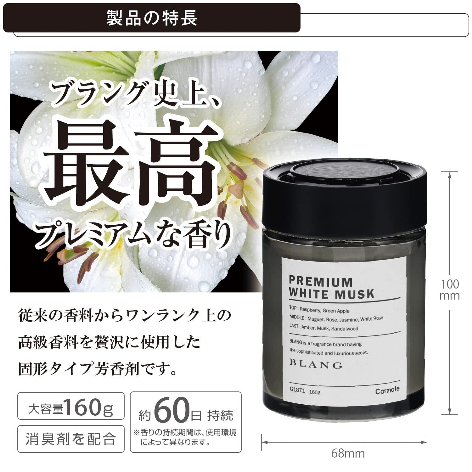 カーメイト(CARMATE) ゲルタイプ芳香剤 BLANG ブラング NLシリーズ プレミアムホワイトムスクの香り G1871