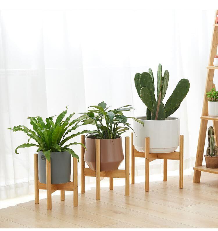 フラワースタンド 木製 屋外 室内 花台 鉢スタンド 植木鉢台 内幅25cmまで調整 て 竹製 植木台 て 100KG耐荷重 花ポットホルダ 組み立て簡単 鉢置き (ナチュラル,Mサイズ:25x35cm) | hananoki