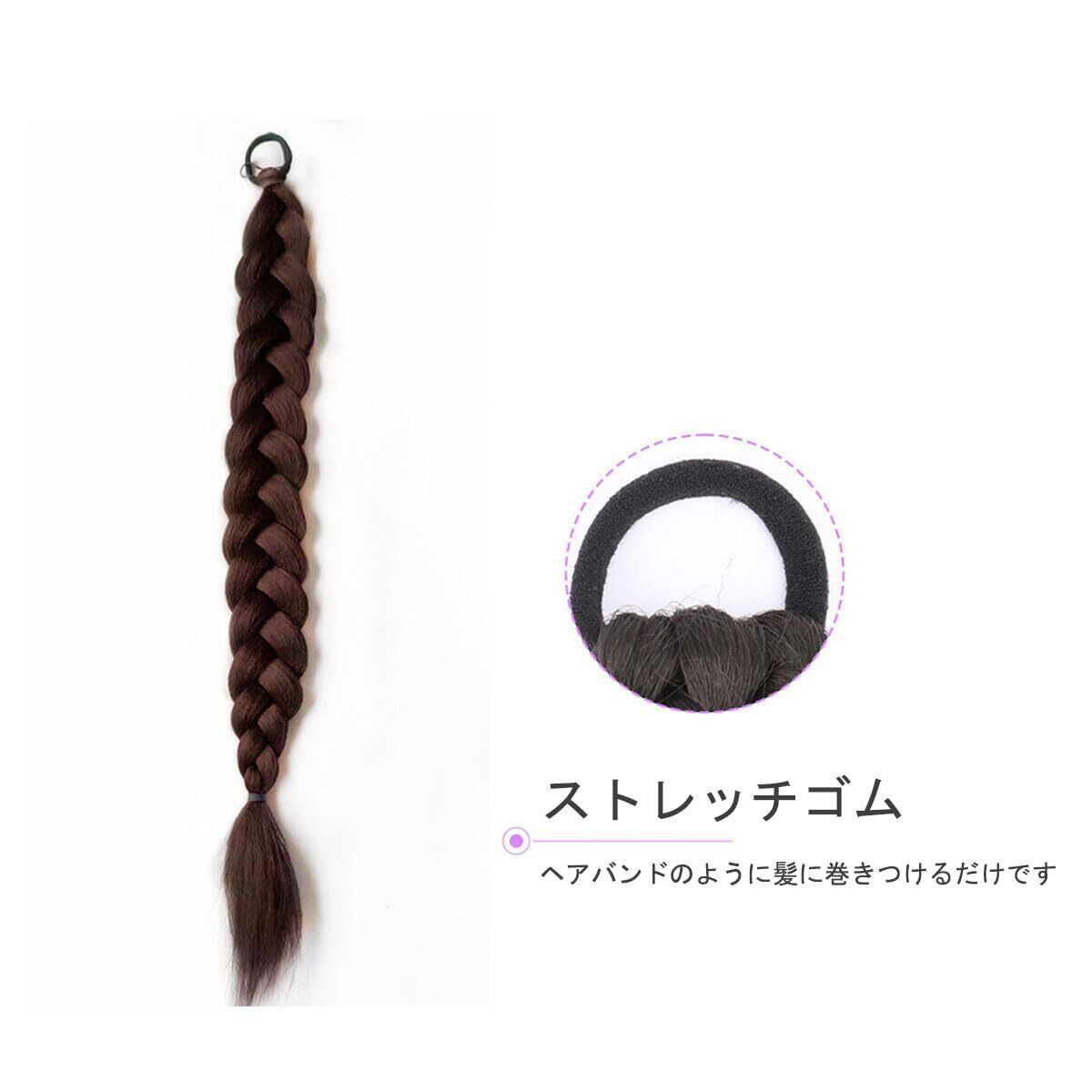 ヘアエクステ 三つ編み ウィッグ 45cm 編み込み ポニーテール ウィッグ ツインテール 編み込み エクステ ダンス エクステンション 付け毛 コスチューム イベント パーティー 誕生日会 キッズ (ダークブラウン)