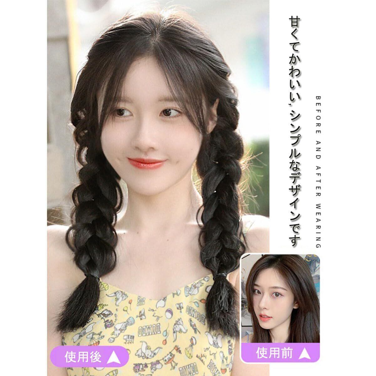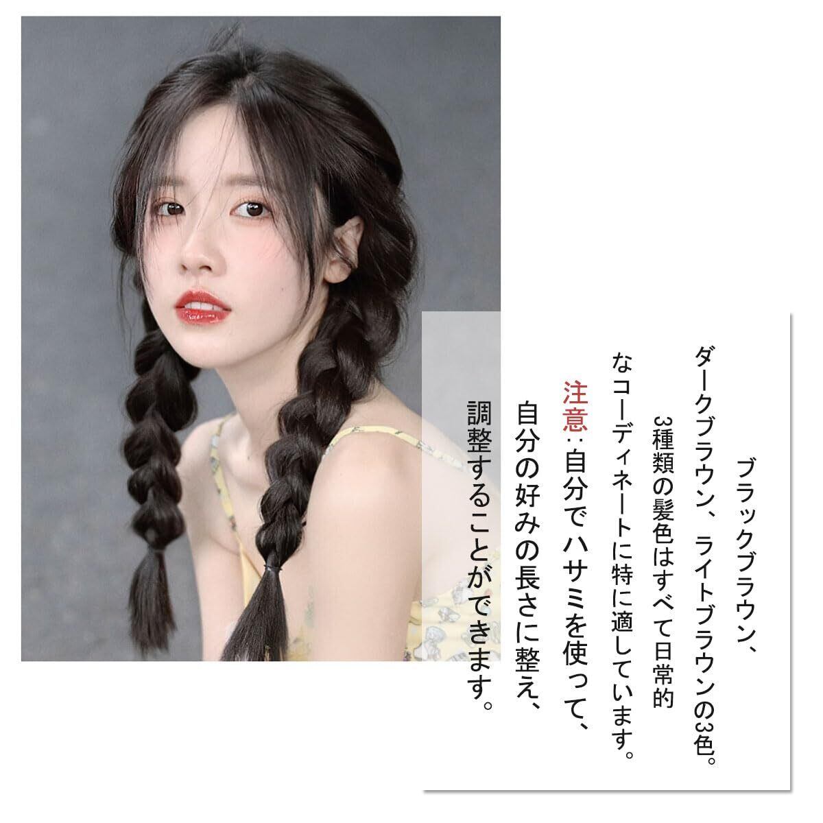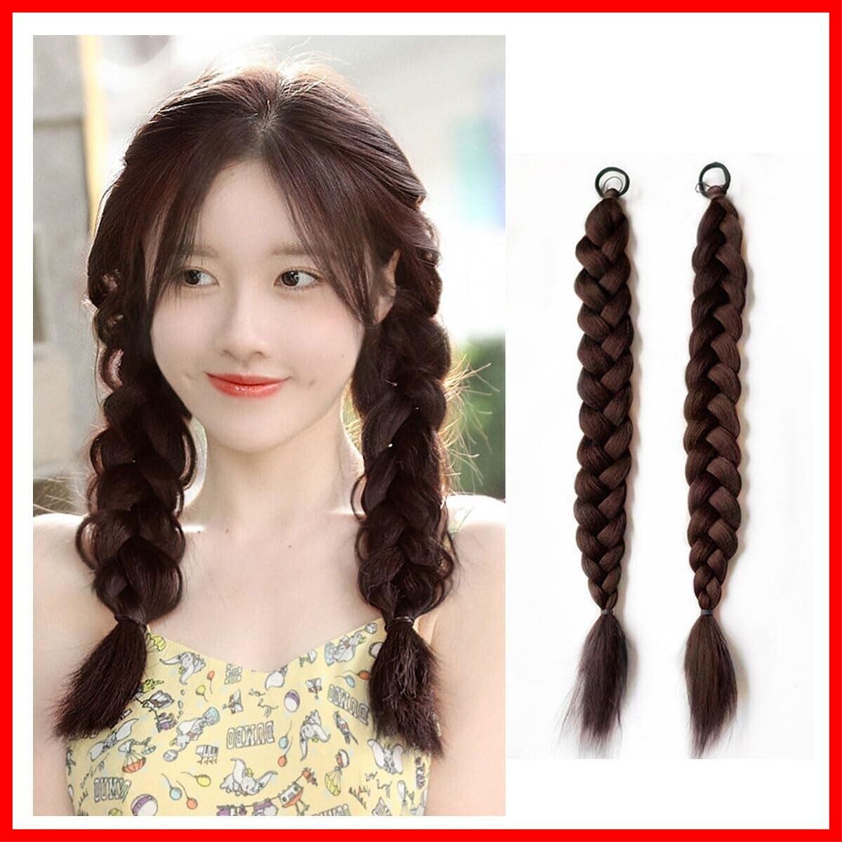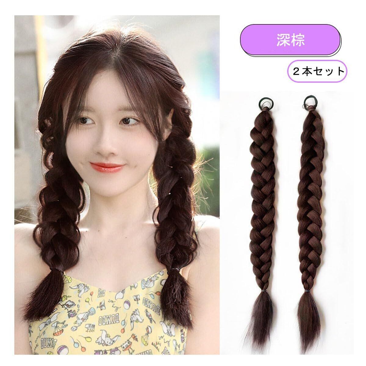 ヘアエクステ 三つ編み ウィッグ 45cm 編み込み ポニーテール ウィッグ ツインテール 編み込み エクステ ダンス エクステンション 付け毛 コスチューム イベント パーティー 誕生日会 キッズ (ダークブラウン) | hananoki