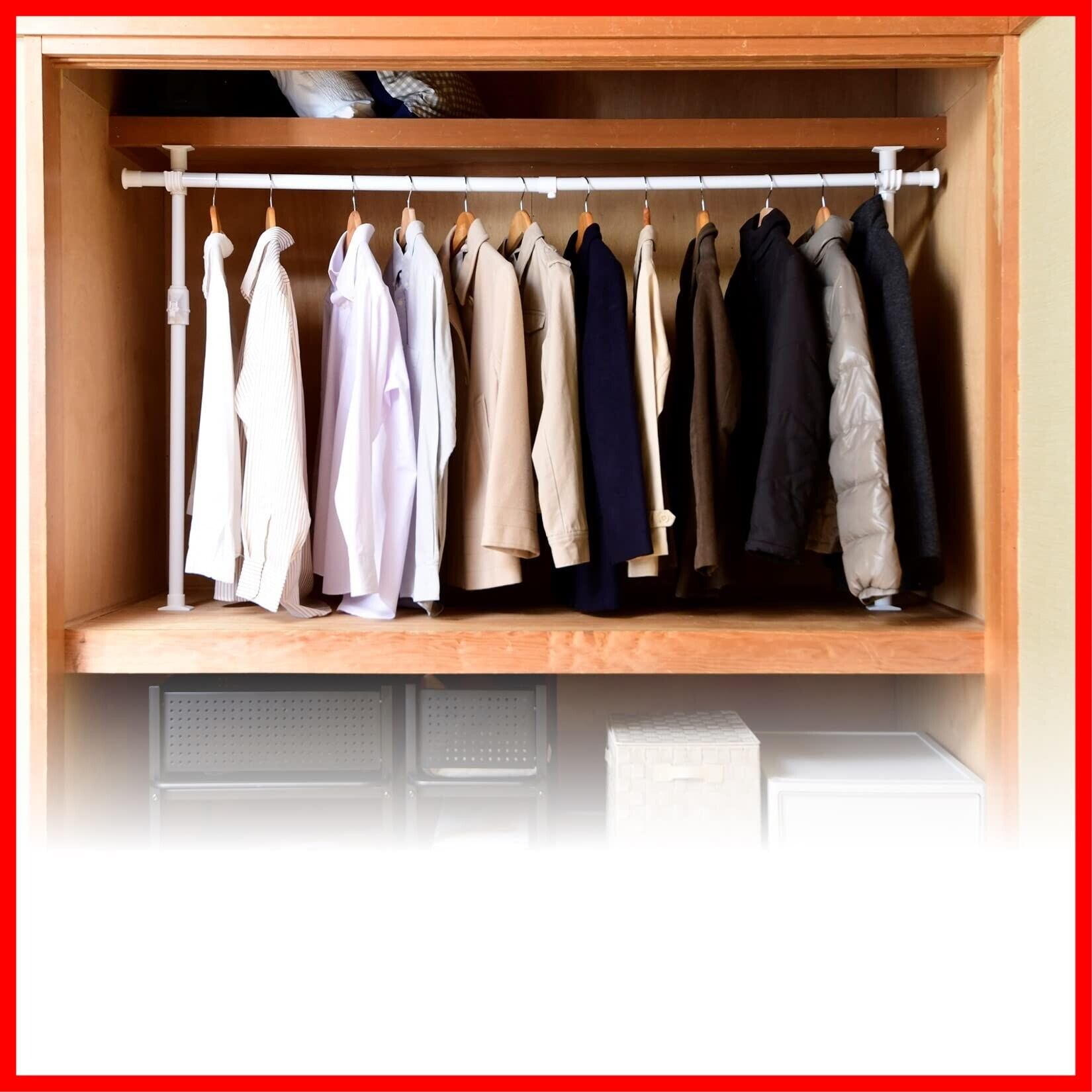 【自由度の高い、たてよこ伸縮】高さの他にも幅は97.5-166まで調整できるので、収納スペースの最大の幅まで使っても良いですし、半分の幅までにしておきチェストも収納、などもできます。また、ハンガーバーの高さも調節できるので、収納する物の高さに合わせて調節できます。